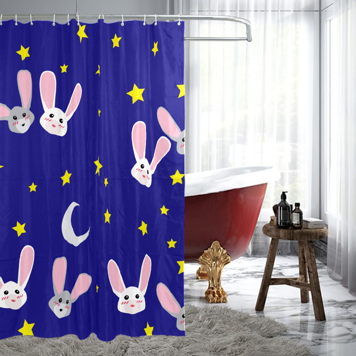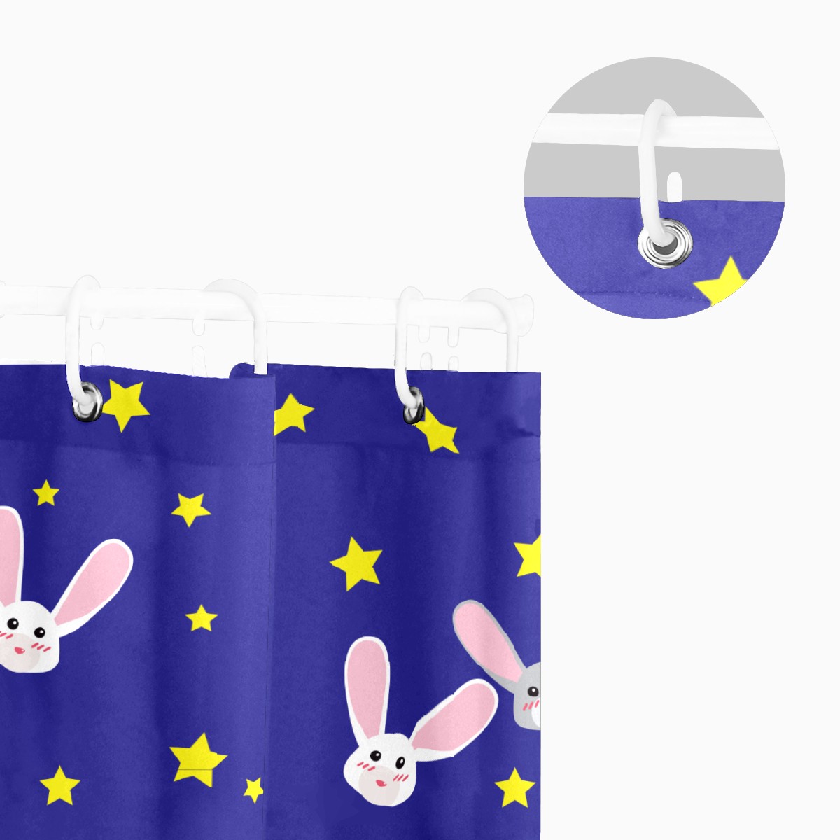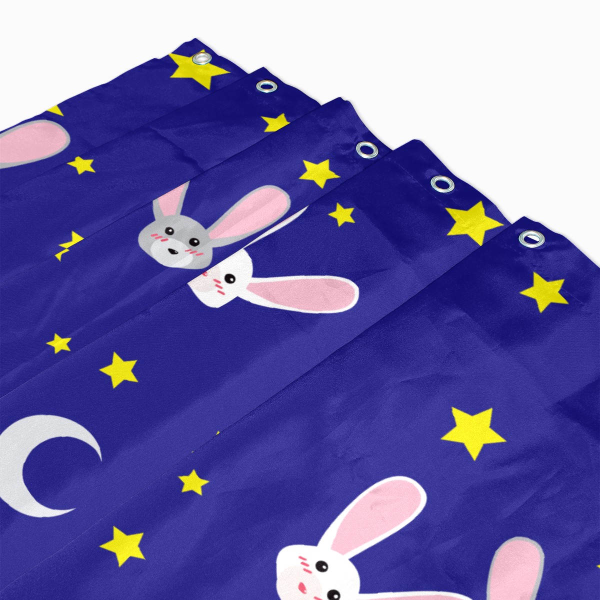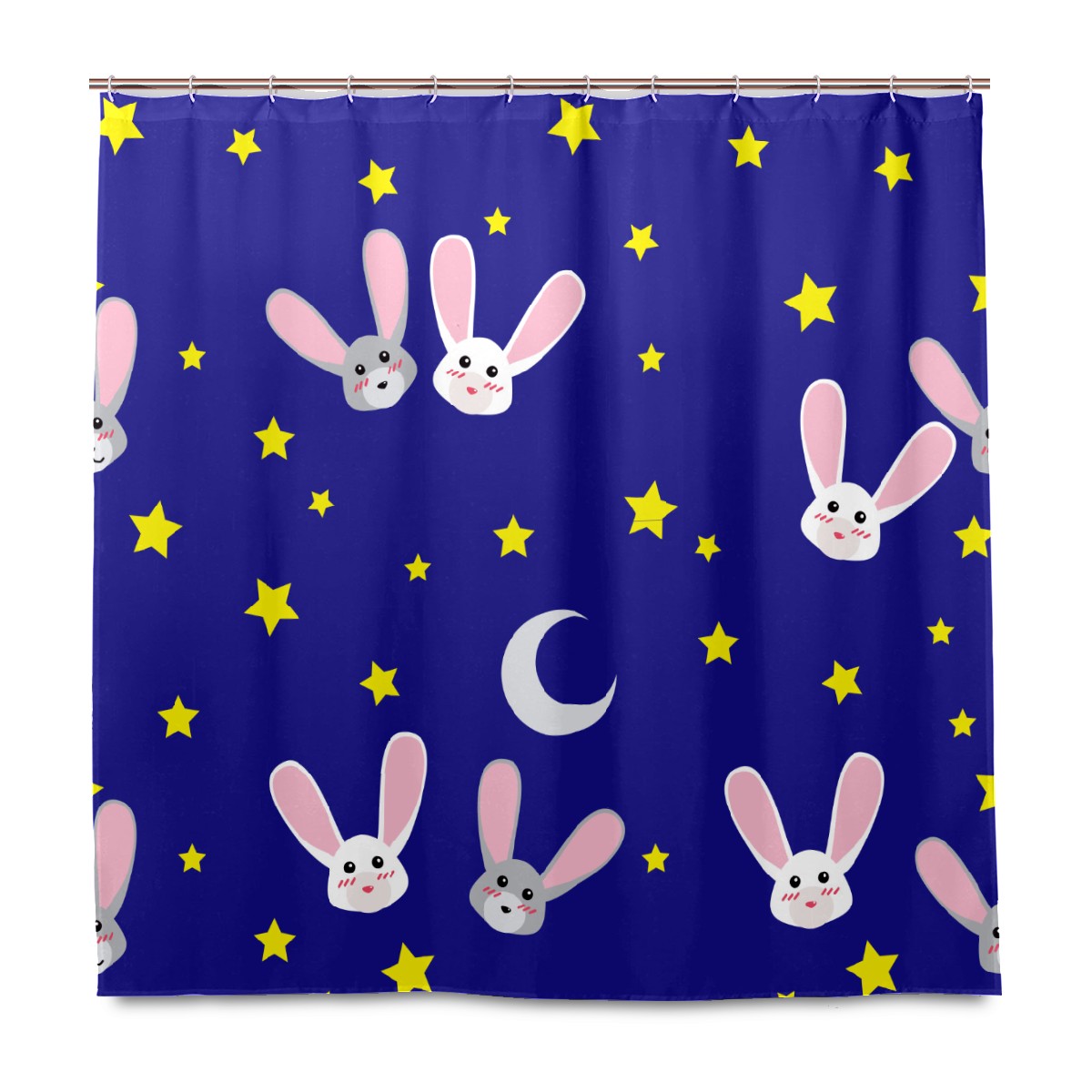Shower Curtains for Bathroom Cartoon Rabbit Moon Stars Waterproof Polyester 60 x 72 inches Bathroom Curtains for Girls Boys with 12 Hooks