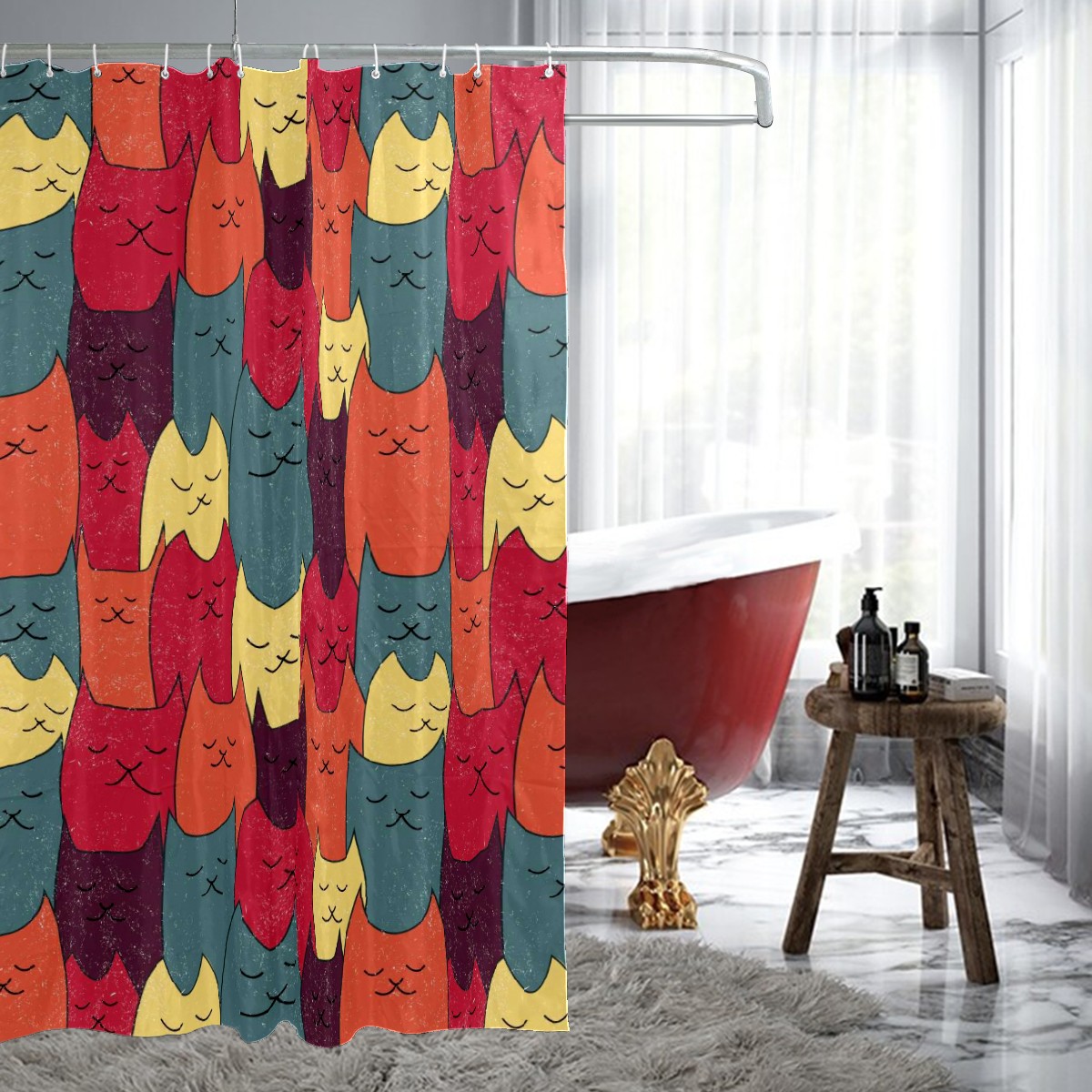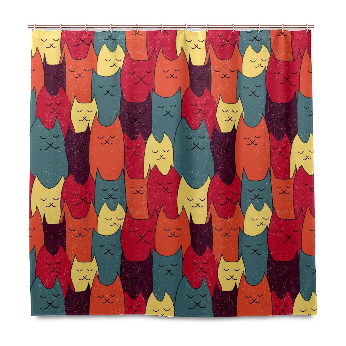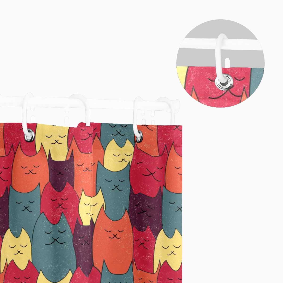 Shower Curtains for Bathroom Cartoon Cat Pattern Waterproof Polyester 60 x 72 inches Bathroom Curtains for Girls Boys with 12 Hooks