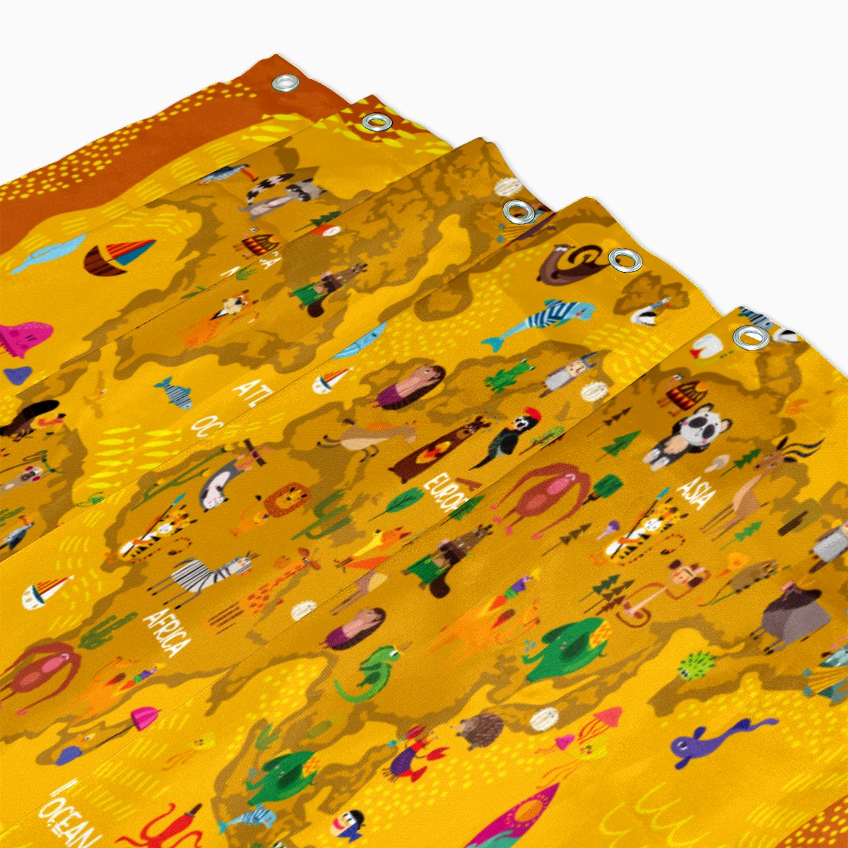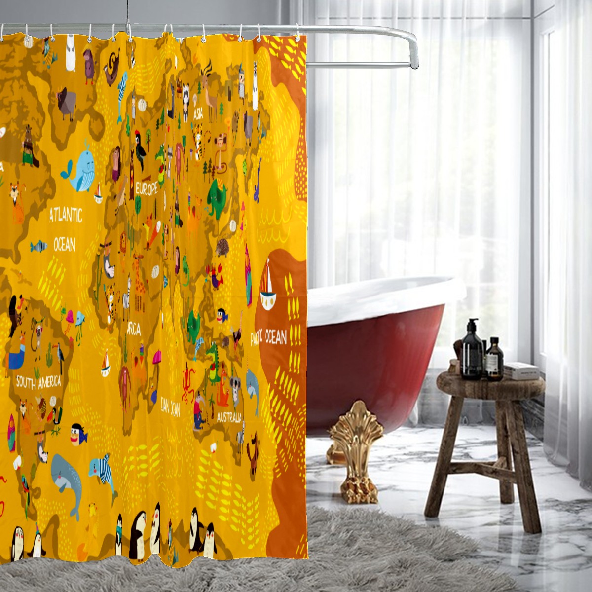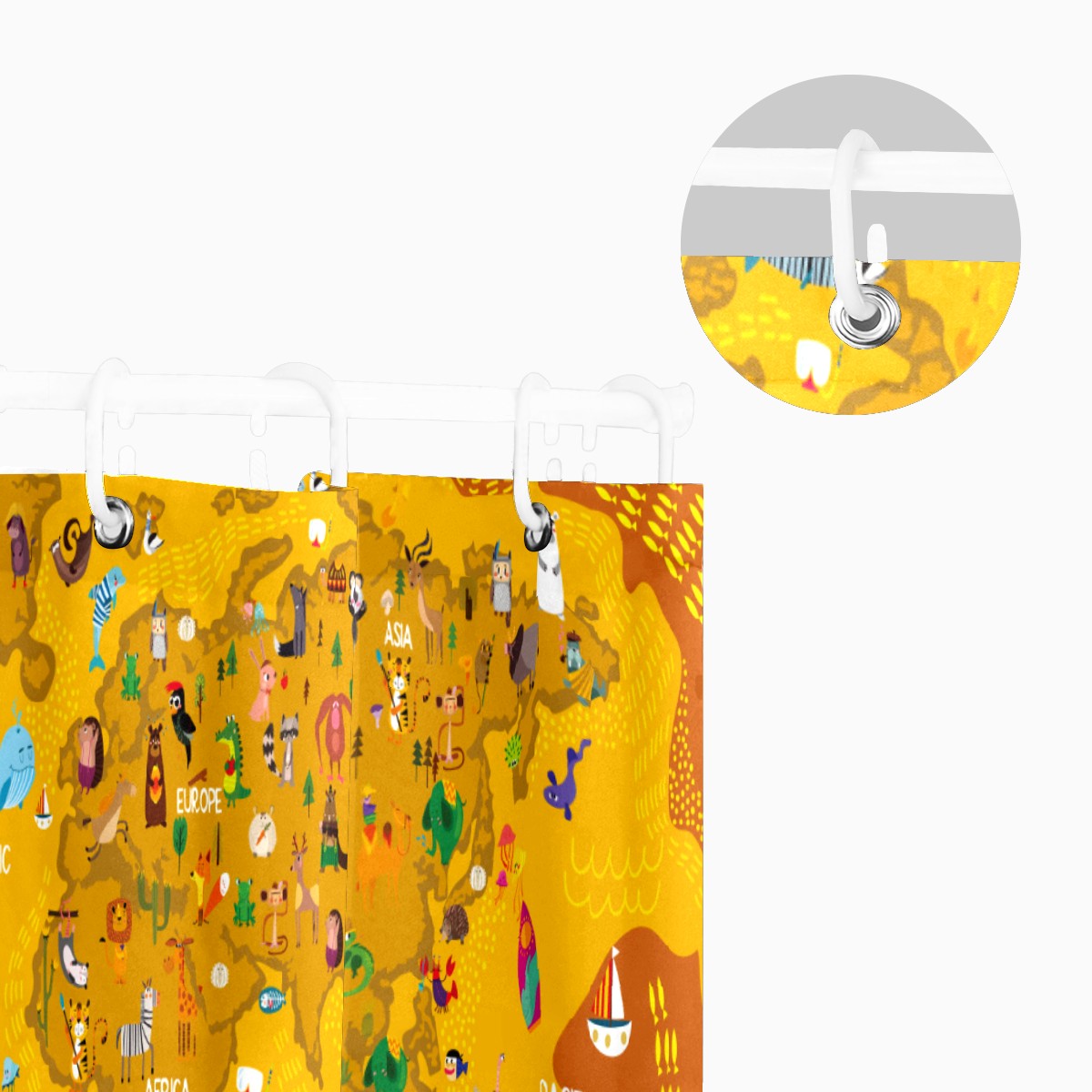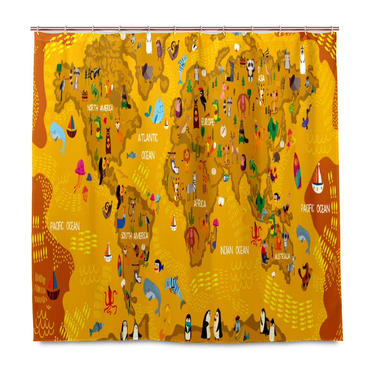 Shower Curtains for Bathroom Cartoon Animal World Map Ocean Waterproof Polyester 60 x 72 inches Bathroom Curtains for Girls Boys with 12 Hooks