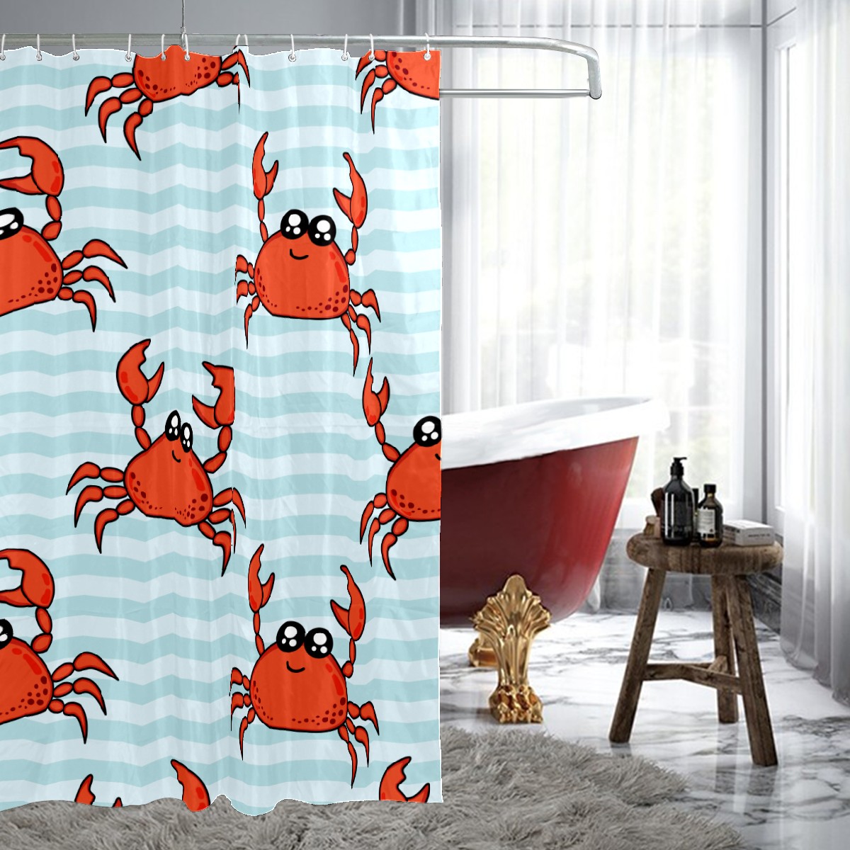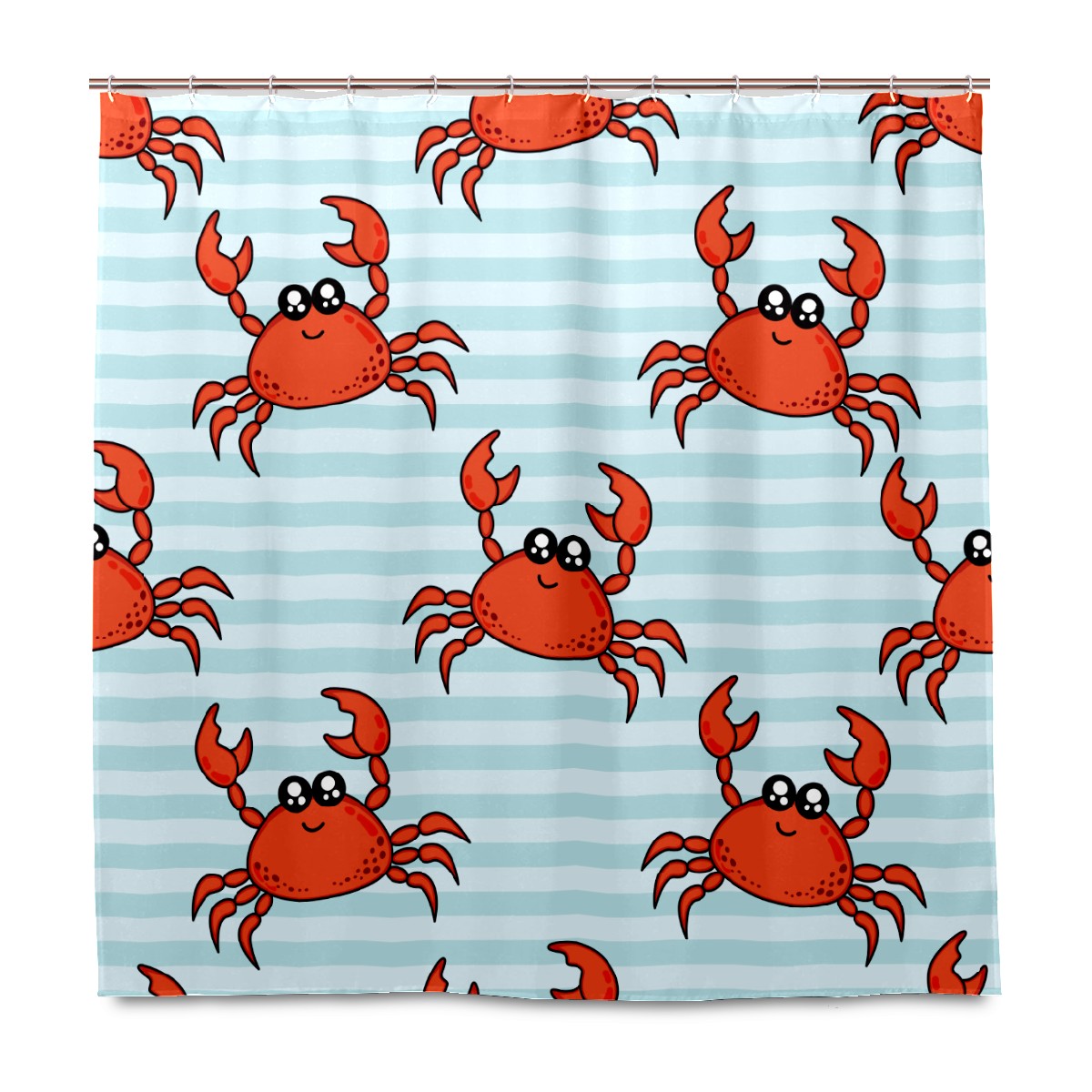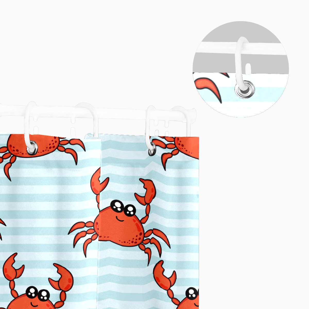 Shower Curtains for Bathroom Blue White Stripes Crabs Pattern Waterproof Polyester 60 x 72 inches Bathroom Curtains for Girls Boys with 12 Hooks