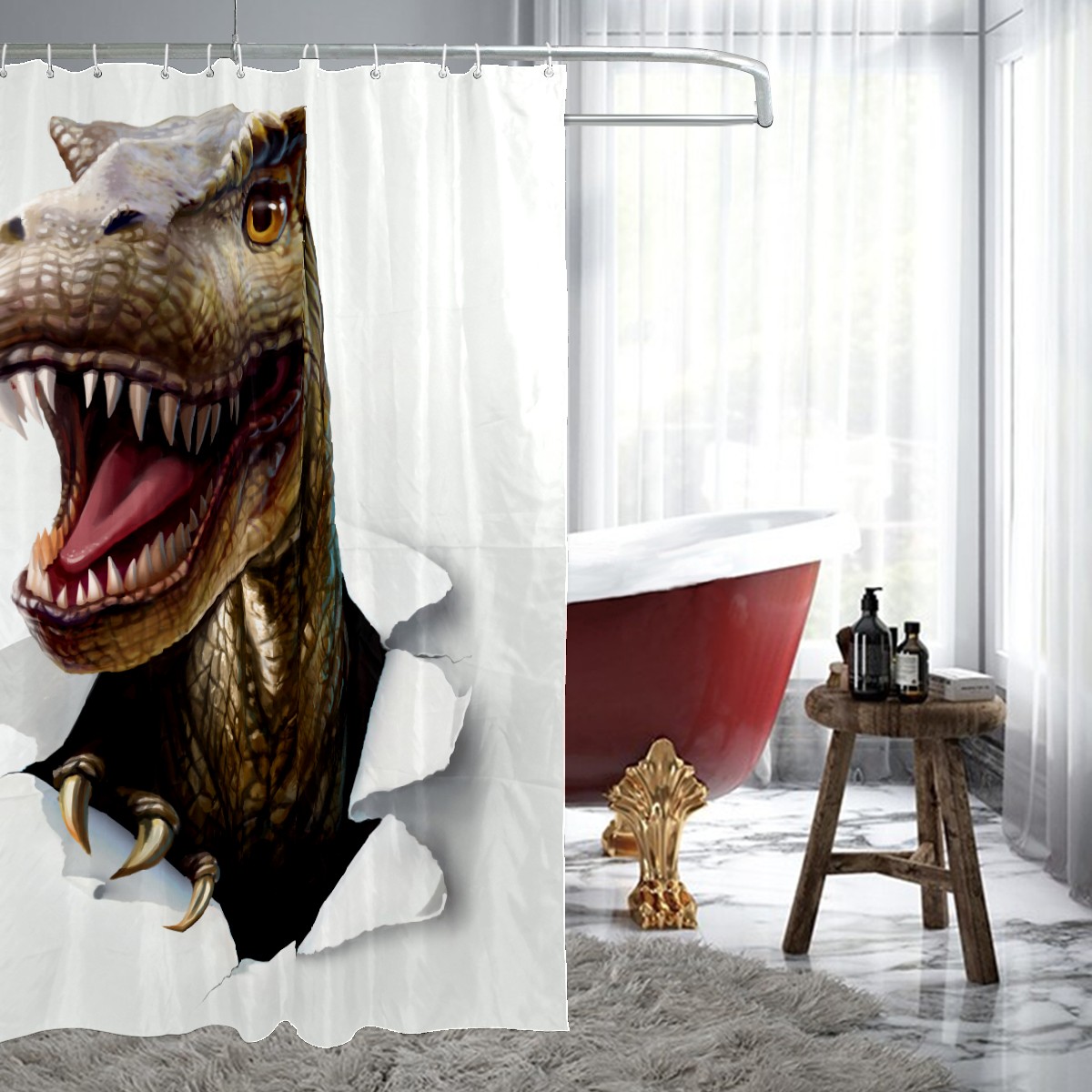 Shower Curtains for Bathroom 3D Dinosaur Head Waterproof Polyester 60 x 72 inches Bathroom Curtains for Girls Boys with 12 Hooks
