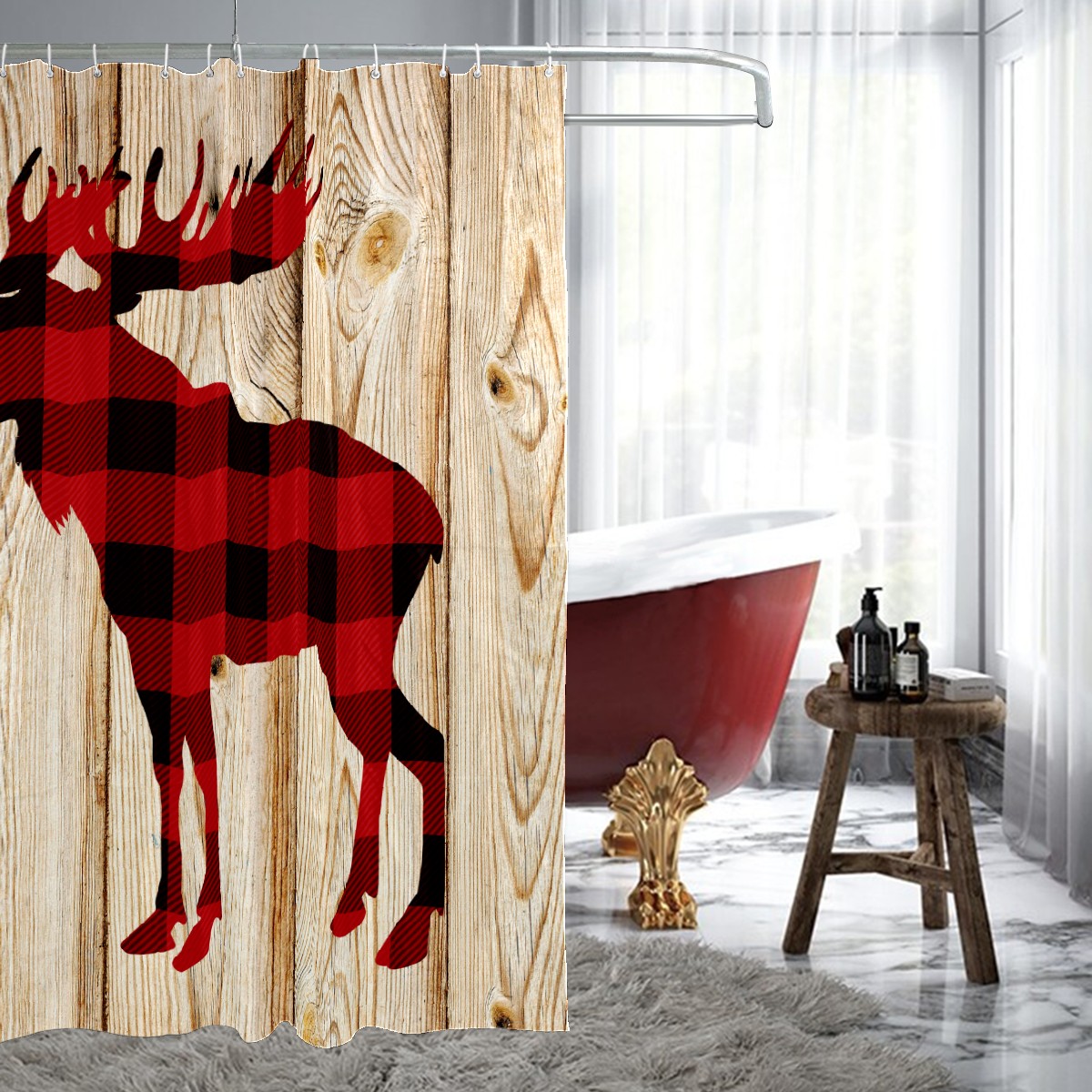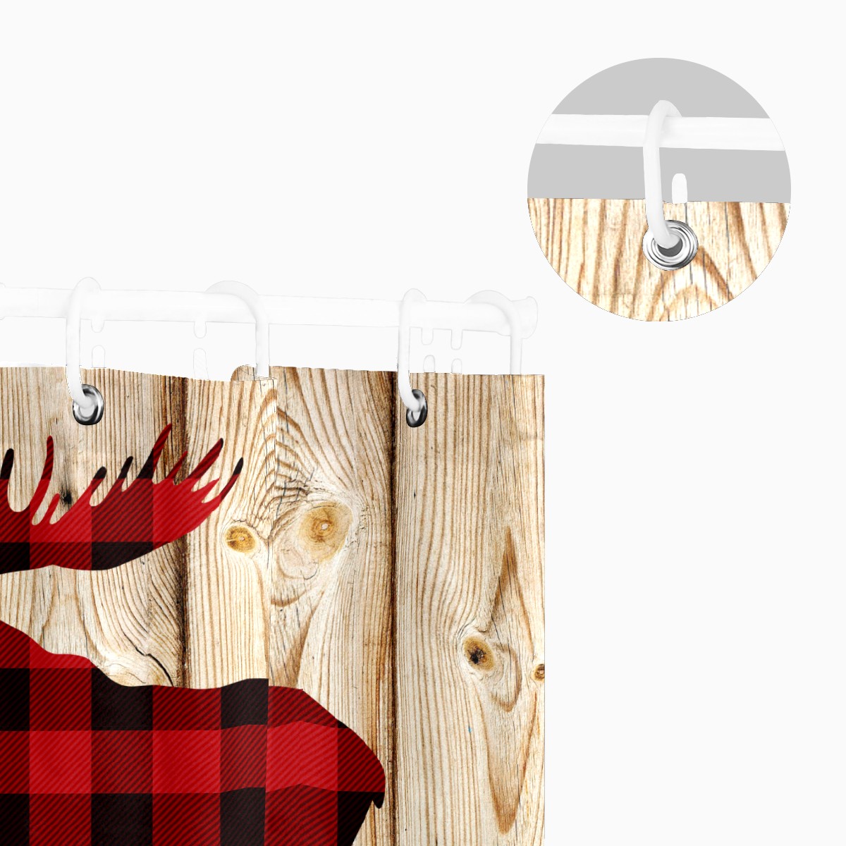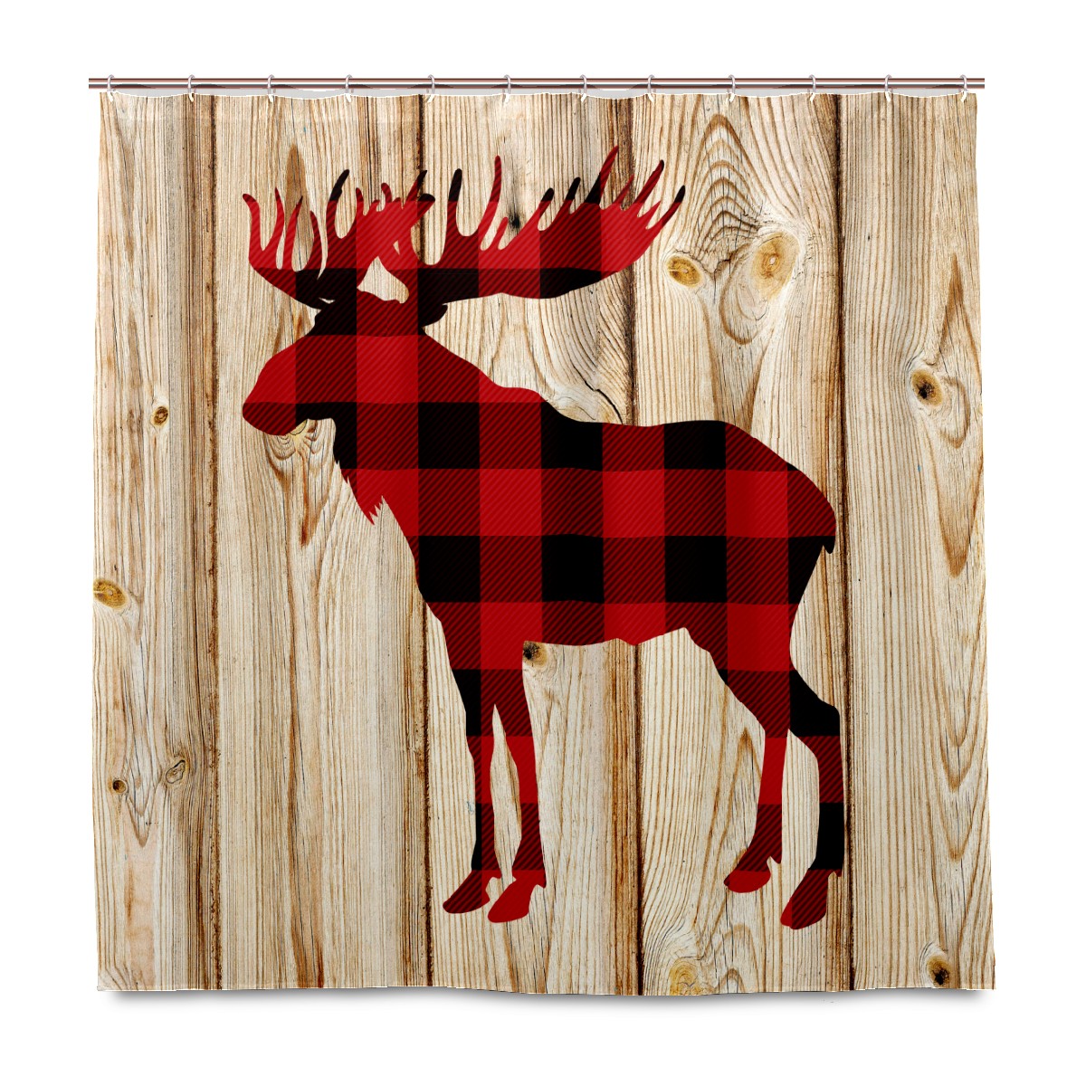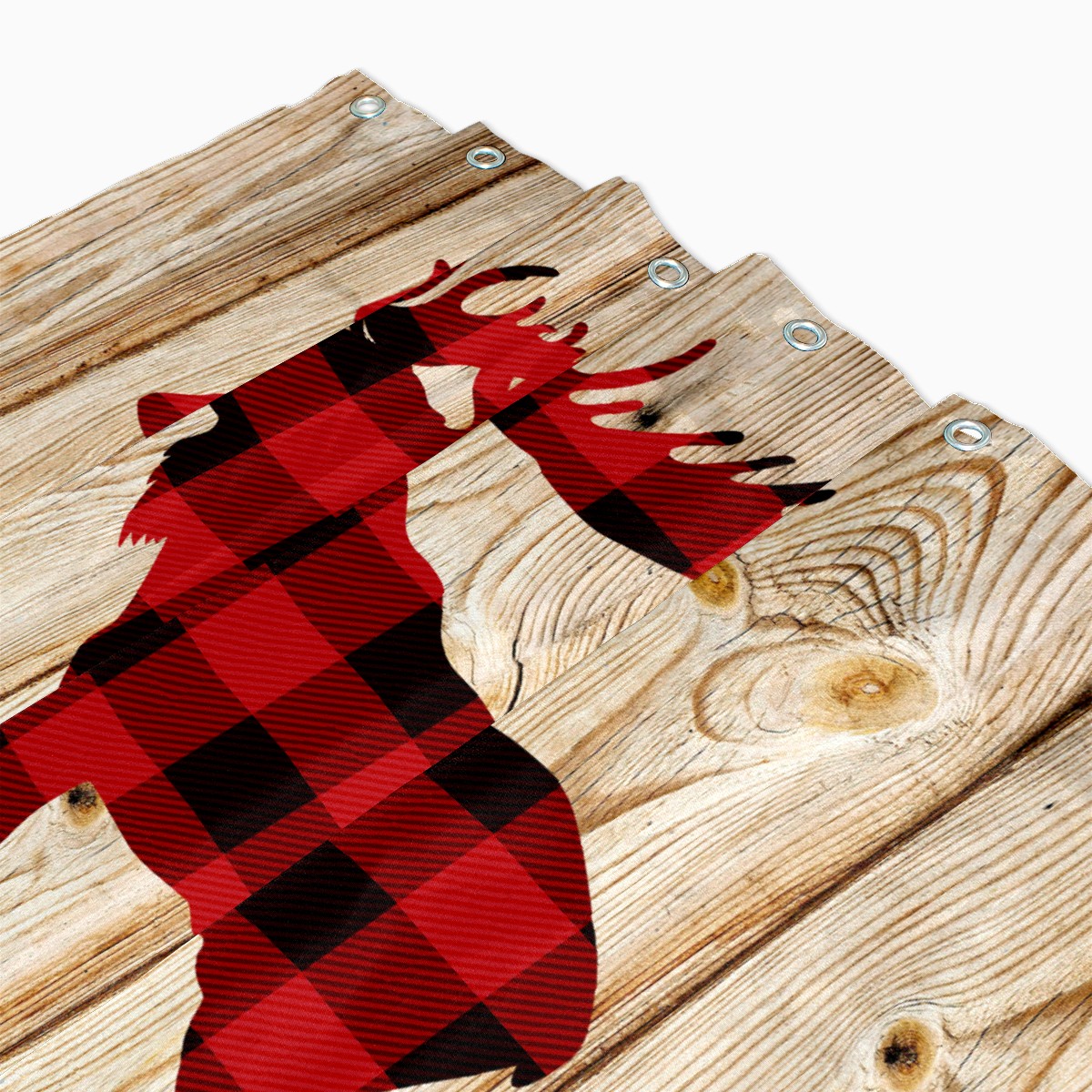 Shower Curtains for Bathroom Black Red Plaid Deer Wood Board Waterproof Polyester 60 x 72 inches Bathroom Curtains for Girls Boys with 12 Hooks