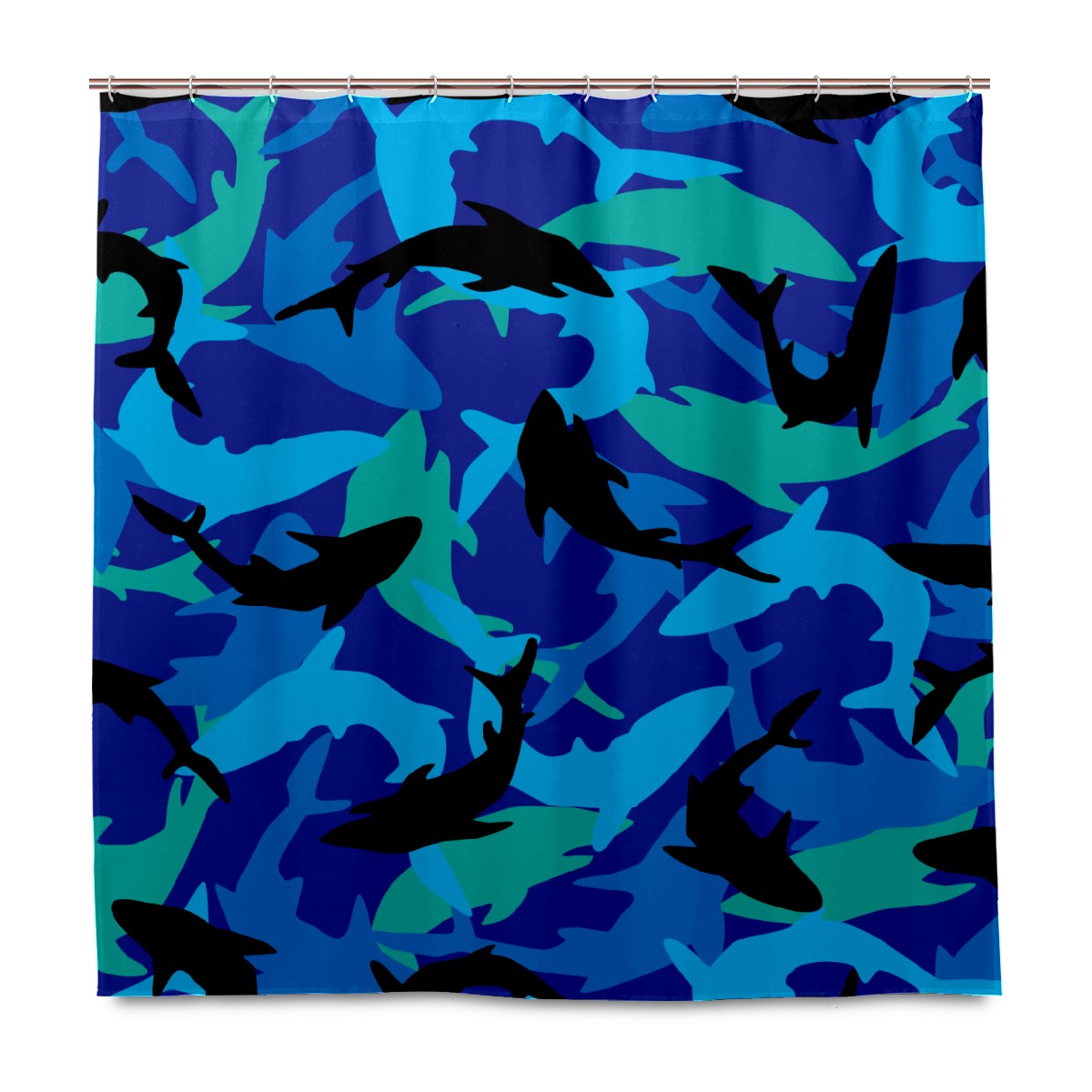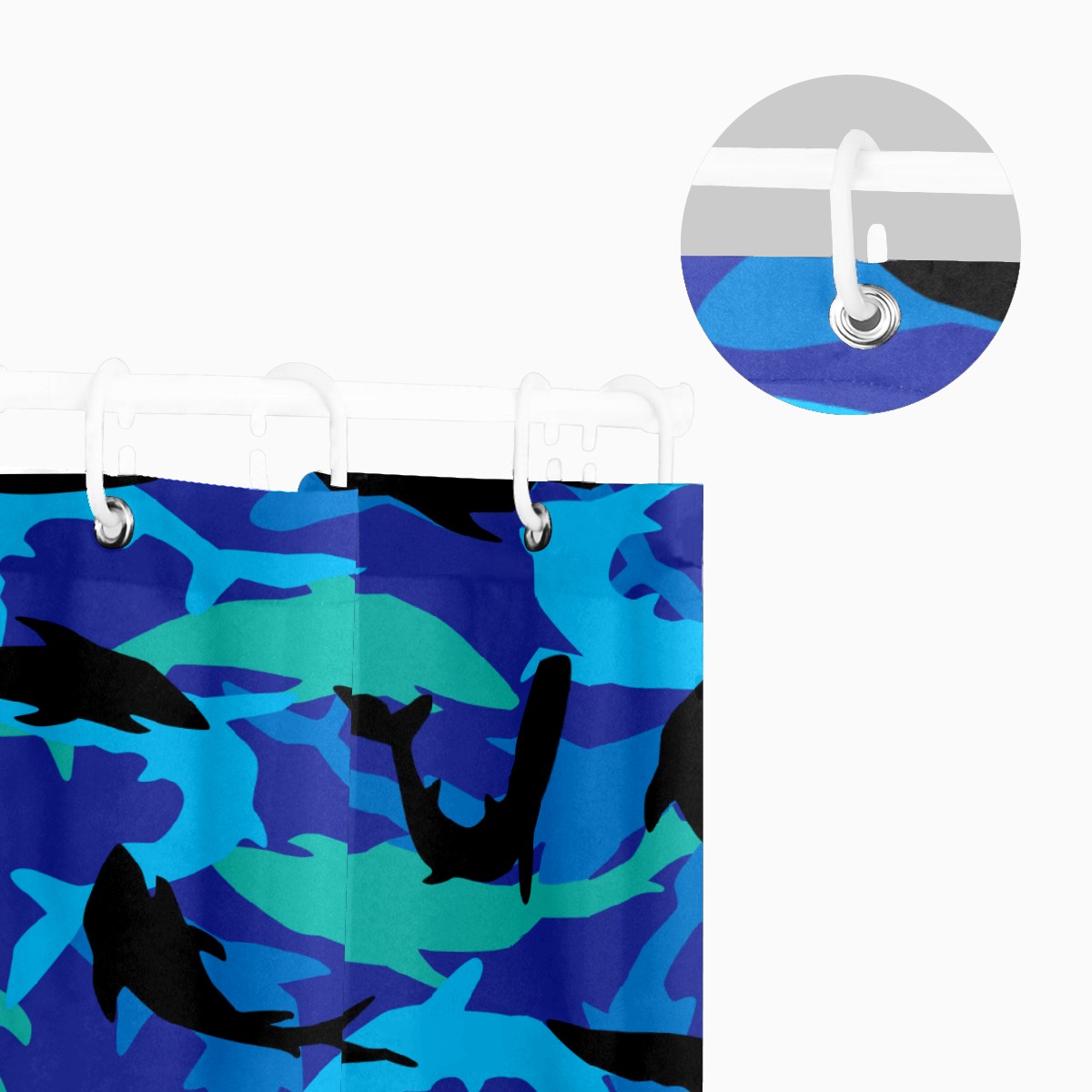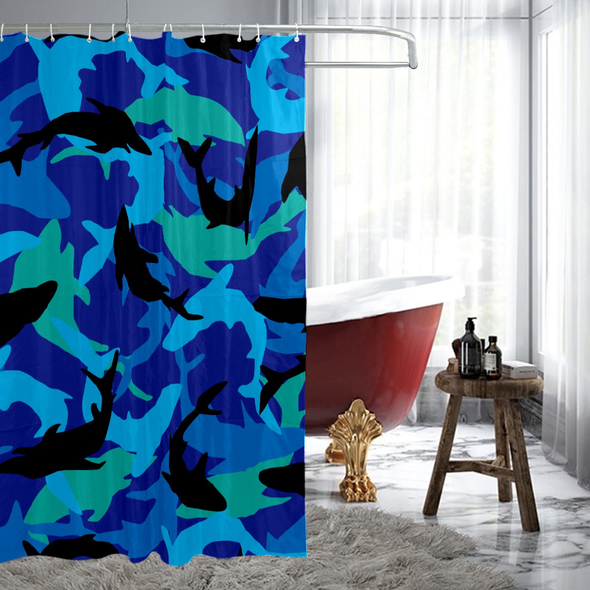 Shower Curtains for Bathroom Blue Black Dolphine Pattern Waterproof Polyester 60 x 72 inches Bathroom Curtains for Girls Boys with 12 Hooks