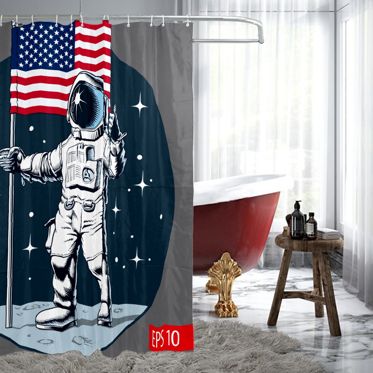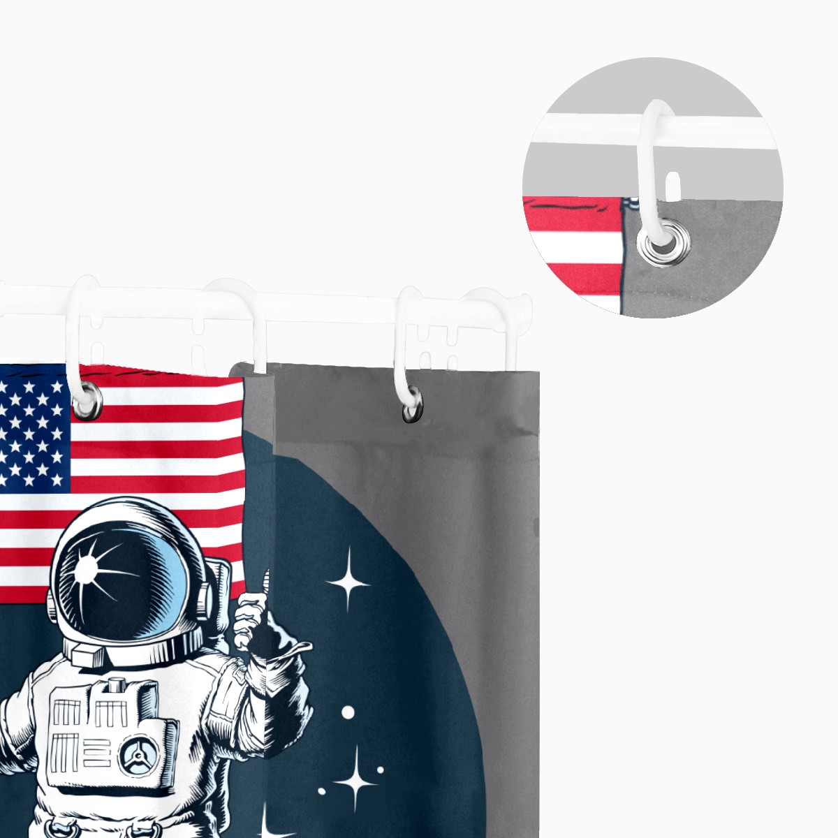 Shower Curtains for Bathroom Astronaut American Flag Cartoon Waterproof Polyester 60 x 72 inches Bathroom Curtains for Girls Boys with 12 Hooks