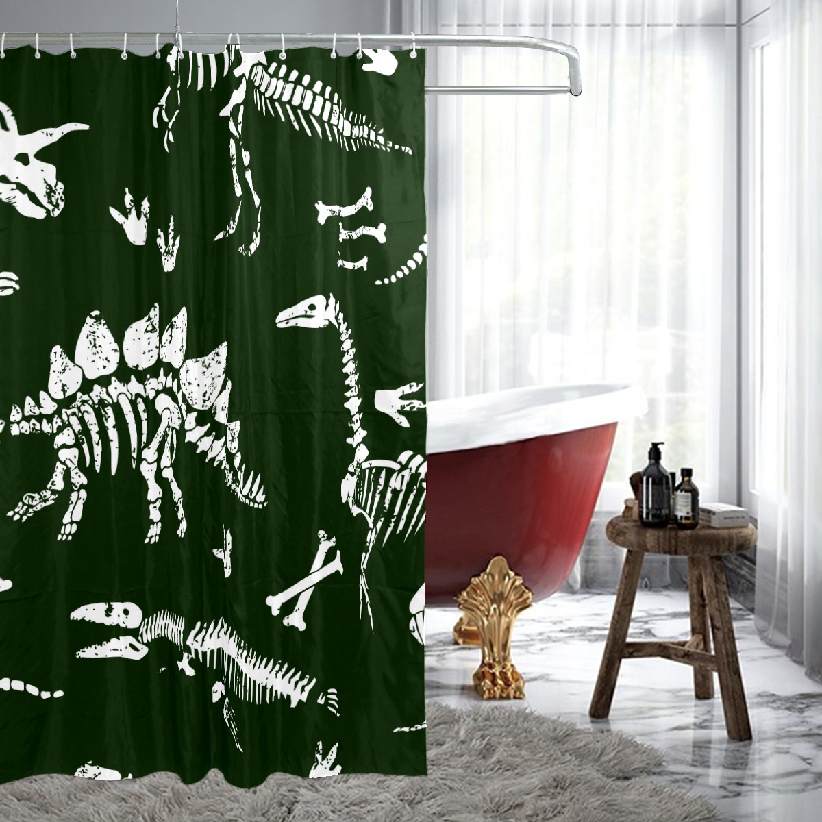 Shower Curtains for Bathroom Antique Retro World Dinosaur Waterproof Polyester 60 x 72 inches Bathroom Curtains for Girls Boys with 12 Hooks