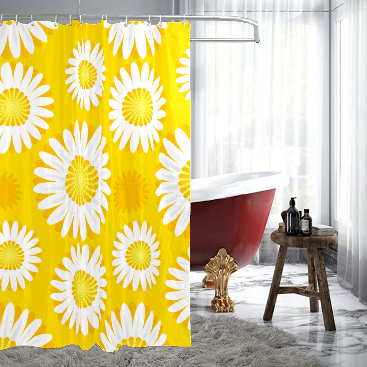 Shower Curtains for Bathroom Yellow Daisy Flower Pattern Waterproof Polyester 60 x 72 inches Bathroom Curtains for Girls Boys with 12 Hooks