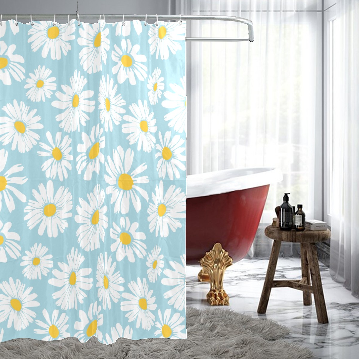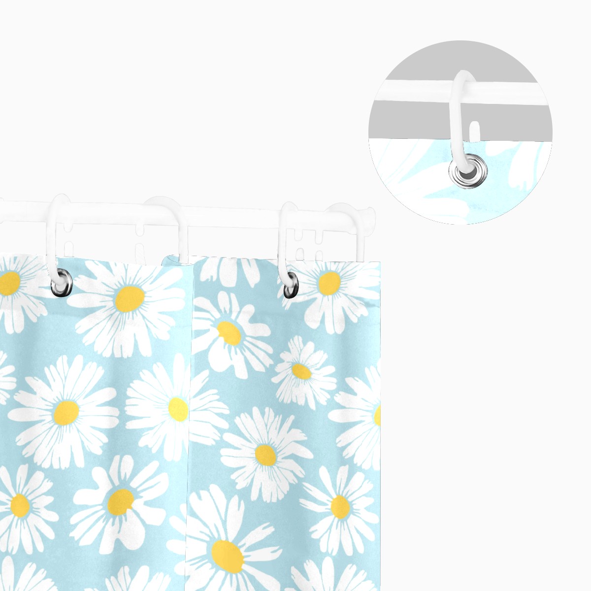 Shower Curtains for Bathroom White Daisy Flower Pattern Waterproof Polyester 60 x 72 inches Bathroom Curtains for Girls Boys with 12 Hooks