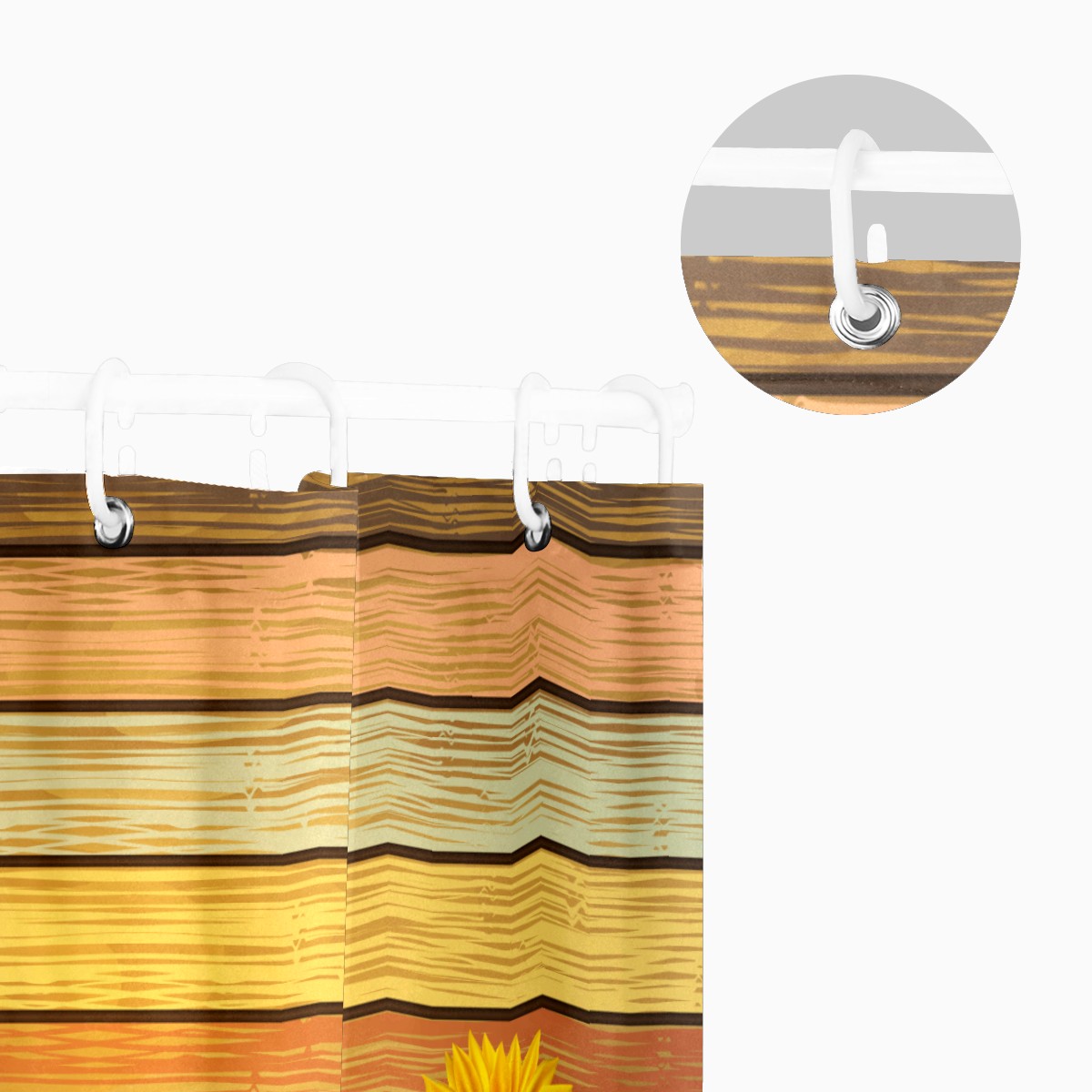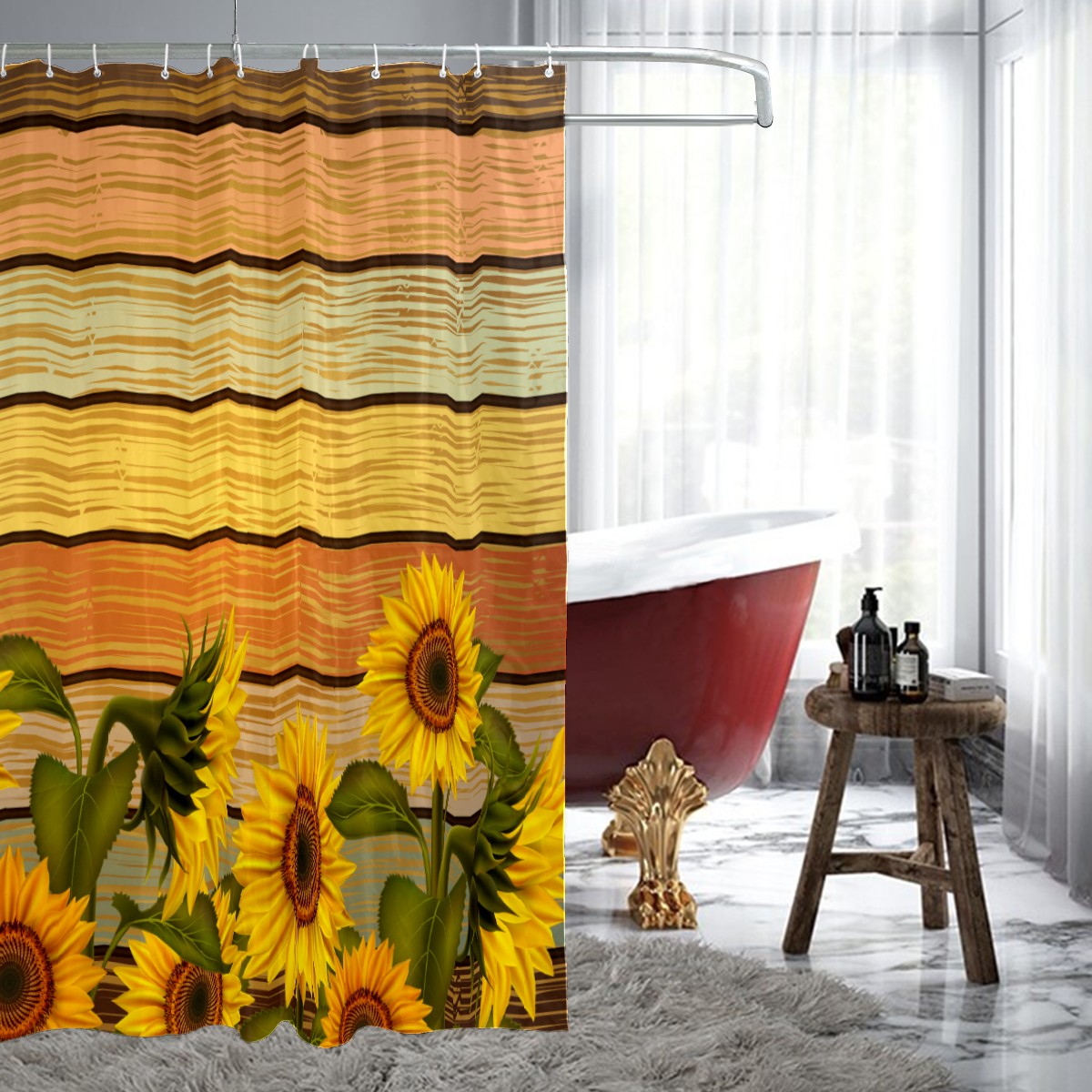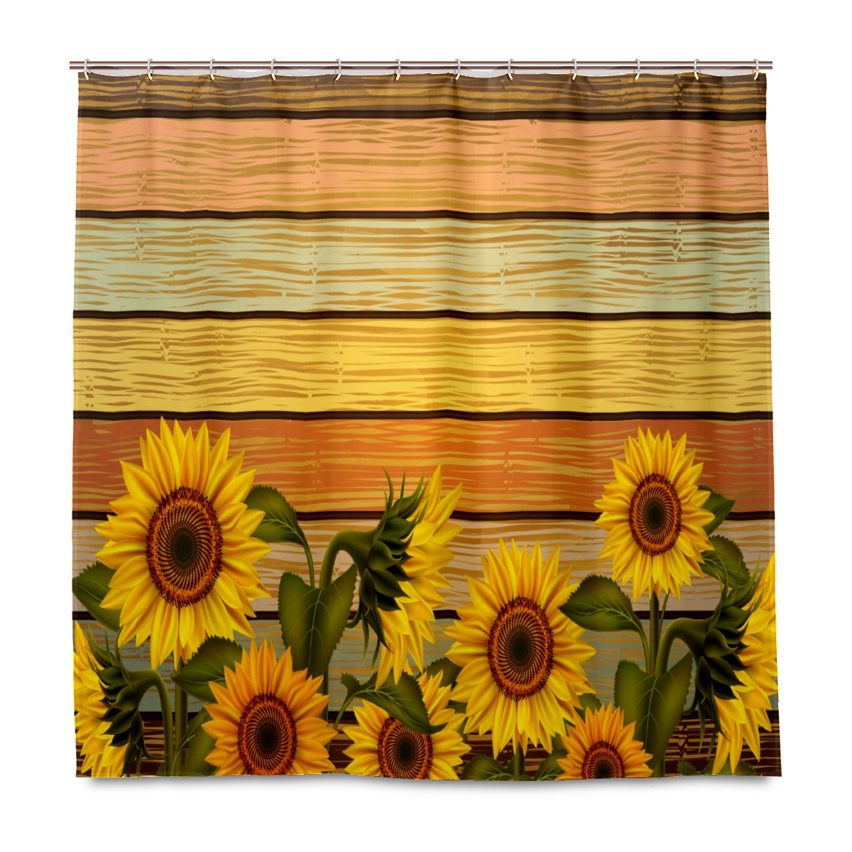 Shower Curtains for Bathroom Sunflower Blooming Retro Wood Stripe Waterproof Polyester 60 x 72 inches Bathroom Curtains for Girls Boys with 12 Hooks