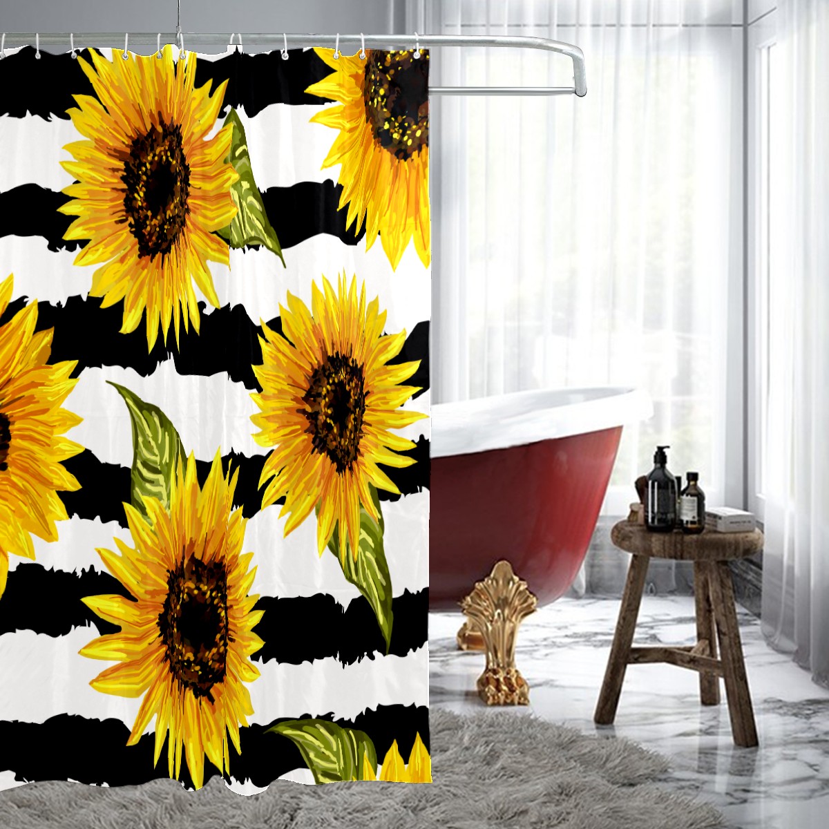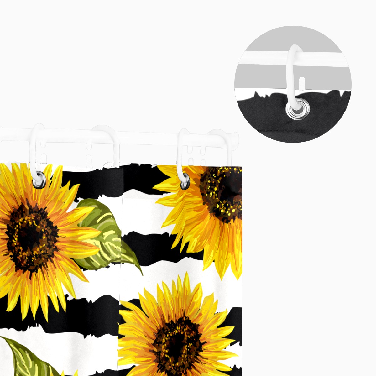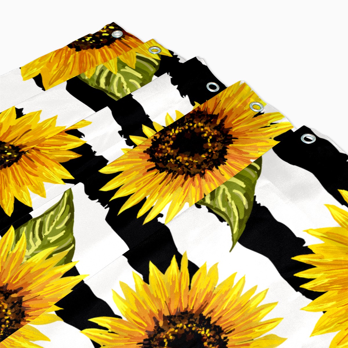 Shower Curtains for Bathroom Sunflower Blooming Black White Stripe Waterproof Polyester 60 x 72 inches Bathroom Curtains for Girls Boys with 12 Hooks
