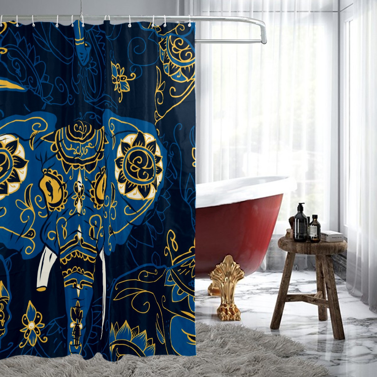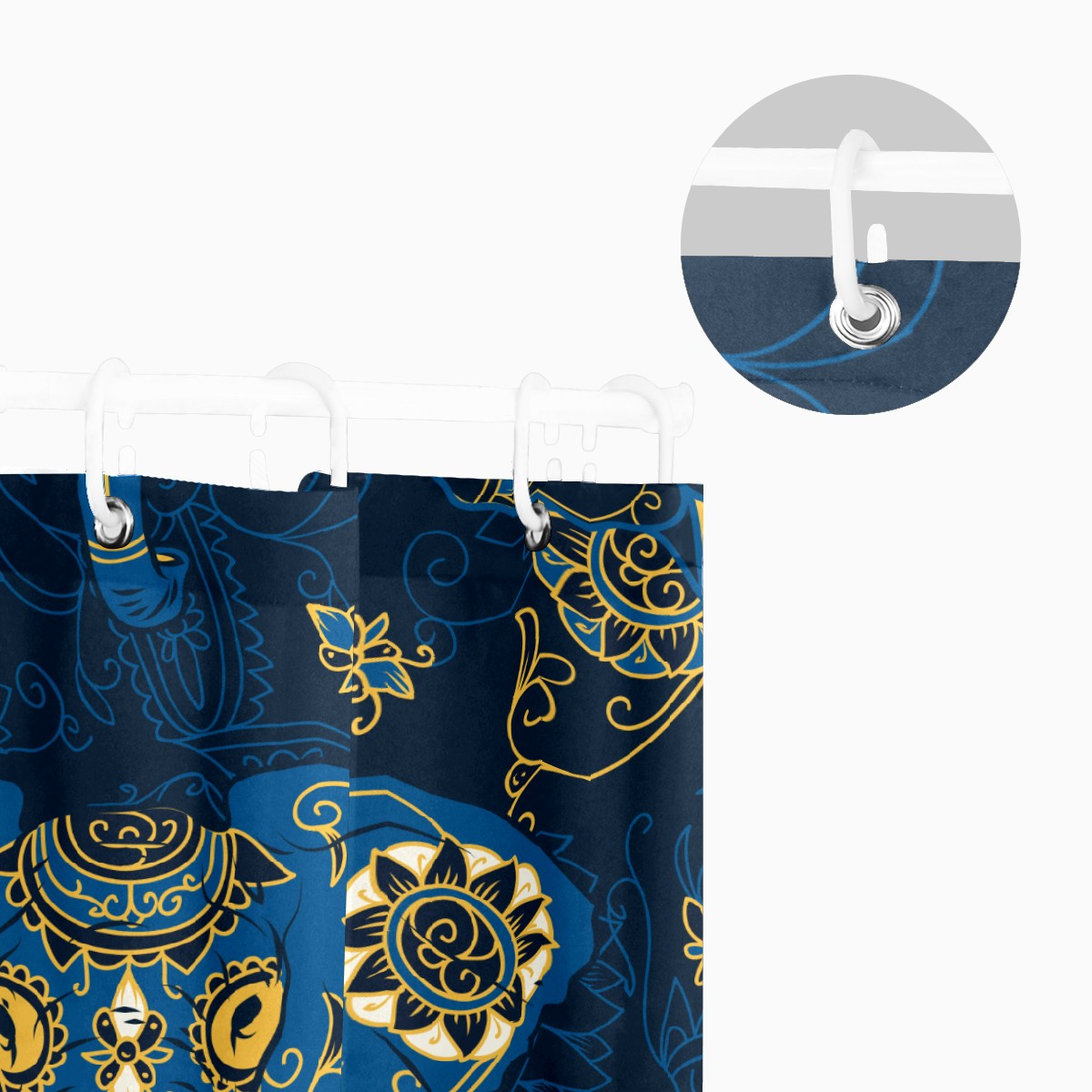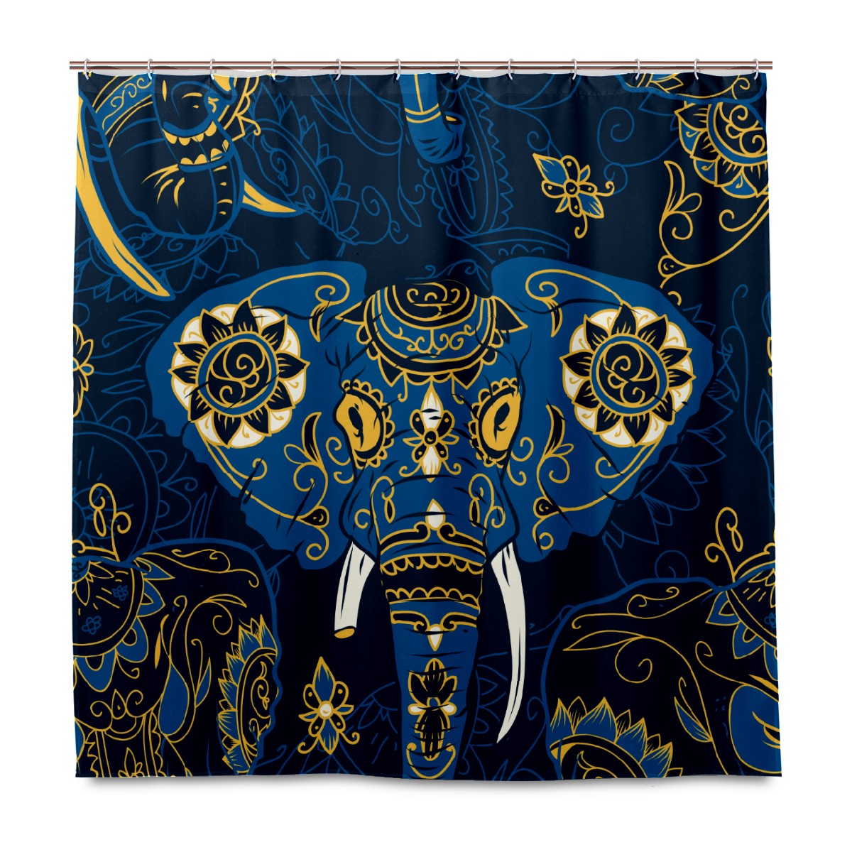 Shower Curtains for Bathroom Cute Indian Lotus Ethnic Elephant Waterproof Polyester 60 x 72 inches Bathroom Curtains for Girls Boys with 12 Hooks
