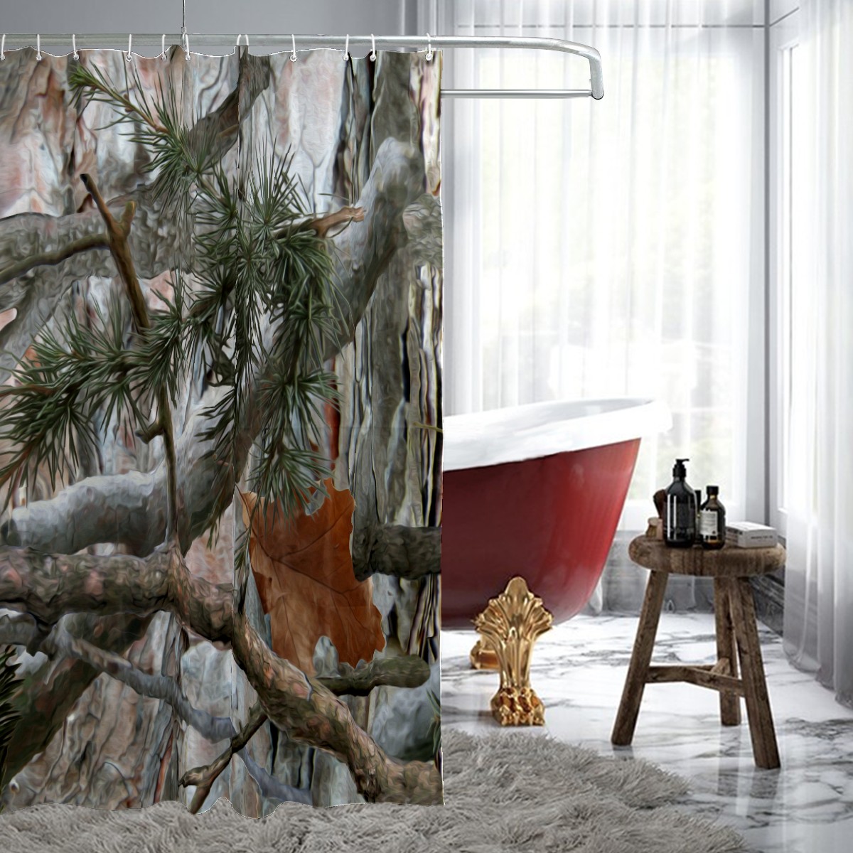 Shower Curtains for Bathroom Camo Retro Rustic Leaf Tree Waterproof Polyester 60 x 72 inches Bathroom Curtains for Girls Boys with 12 Hooks