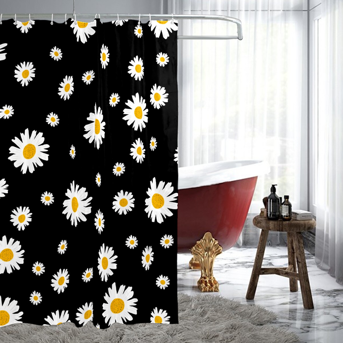 Shower Curtains for Bathroom Daisy Flower Pattern Waterproof Polyester 60 x 72 inches Bathroom Curtains for Girls Boys with 12 Hooks