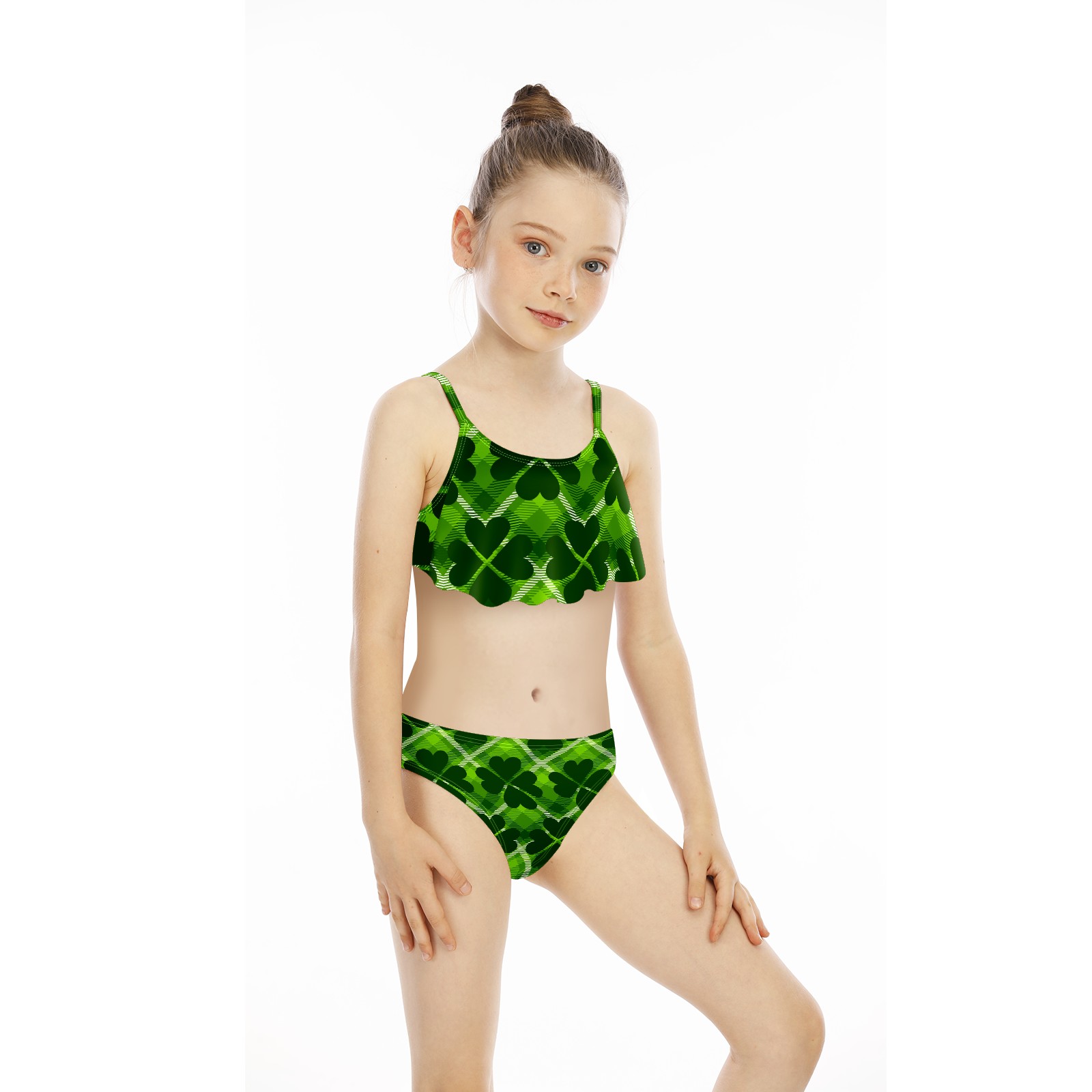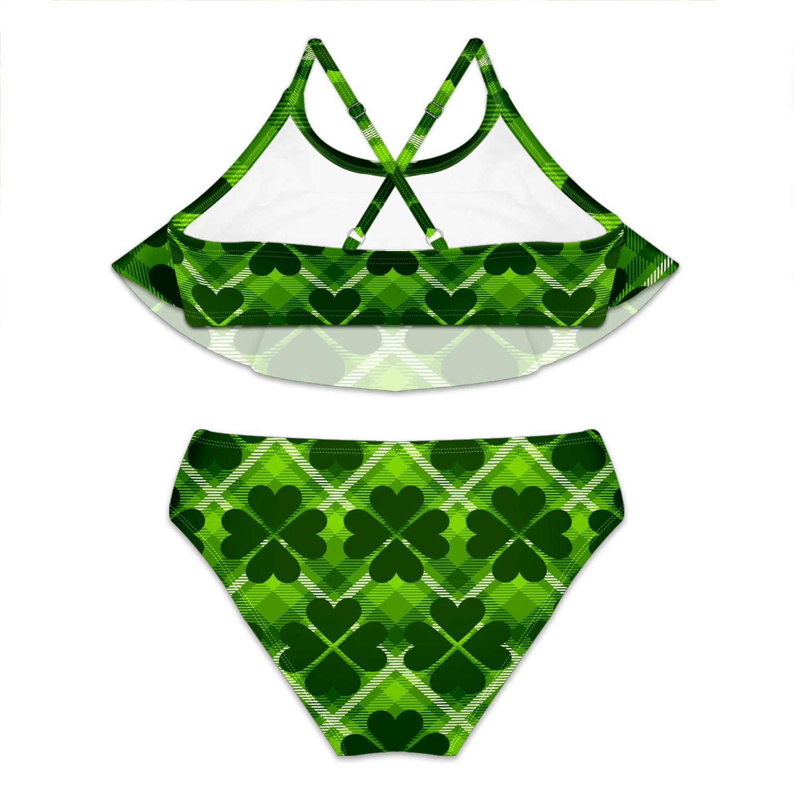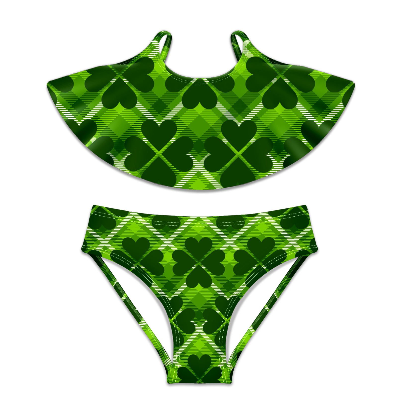 Girls Swimsuits Two Piece Bikini Set Vintage Four Leaf Clover Gingham Plaid Green Ruffle Beach Swimwear Summer Bathing Suit