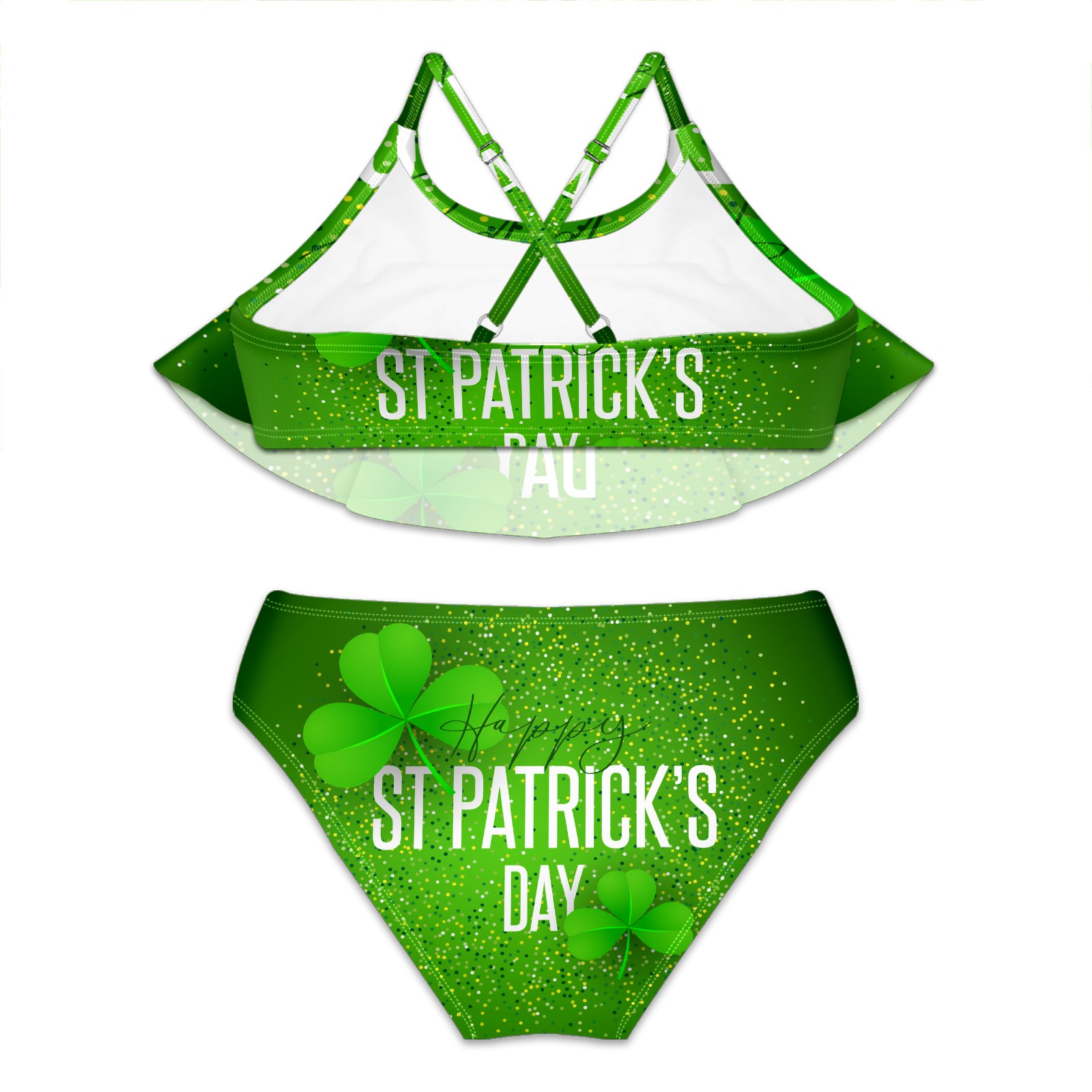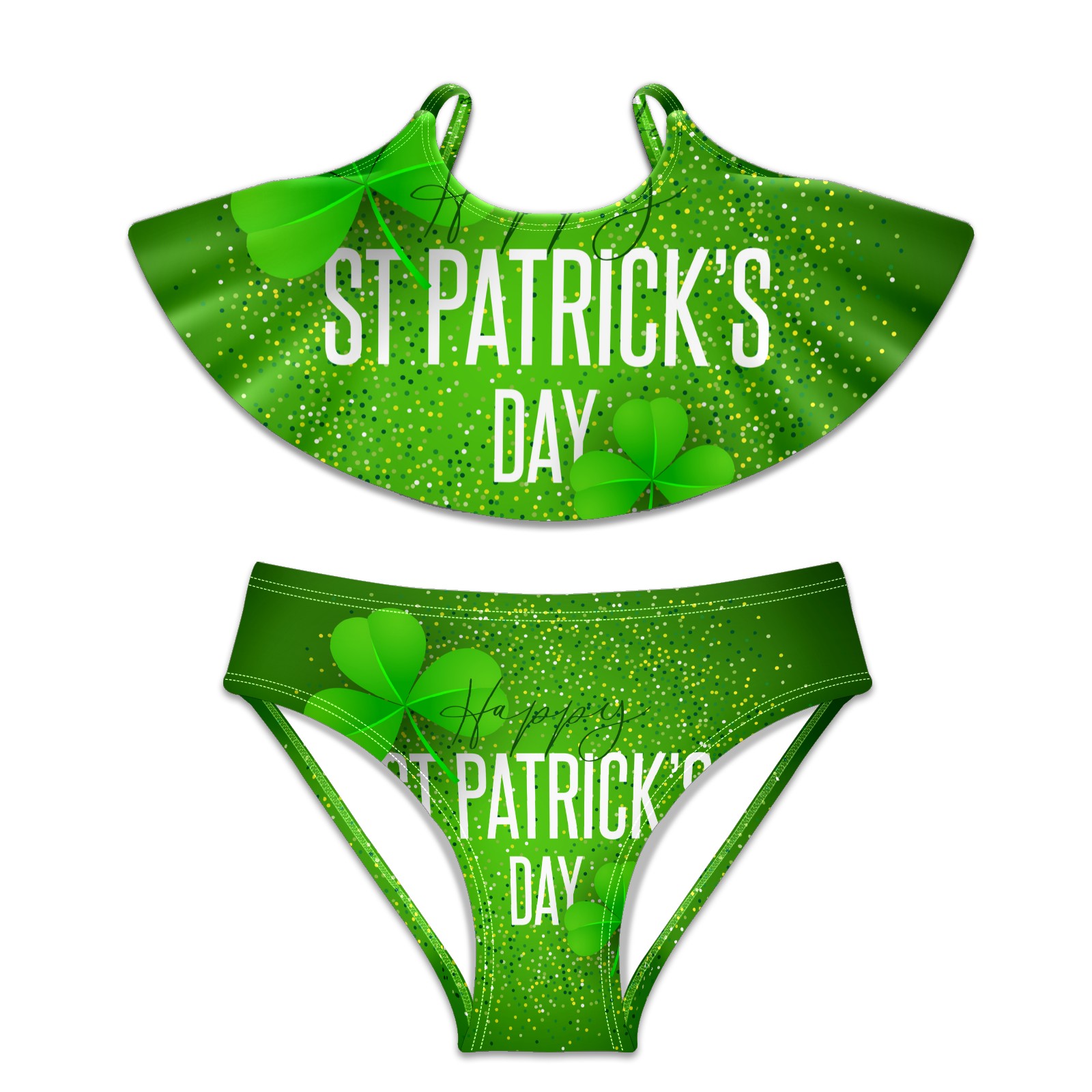 Girls Swimsuits Two Piece Bikini Set Shamrock St Patricks Day Polka Dot Ruffle Beach Swimwear Summer Bathing Suit