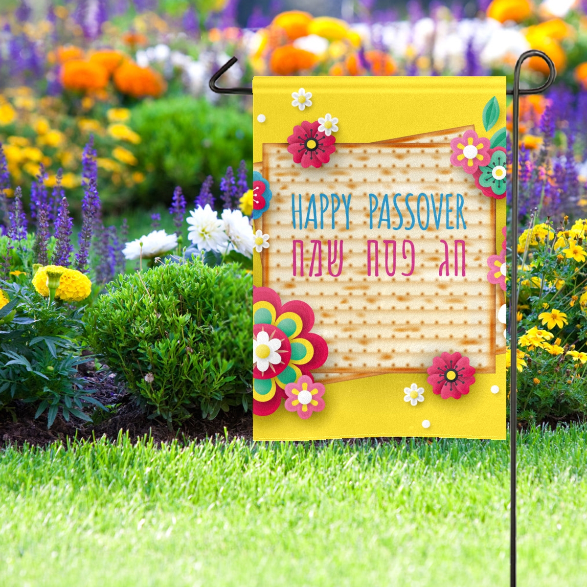Happy Passover Unleavened Bread Garden Flag Two Sided Polyester Yard Flag for Home Decoration 12x18 Inch