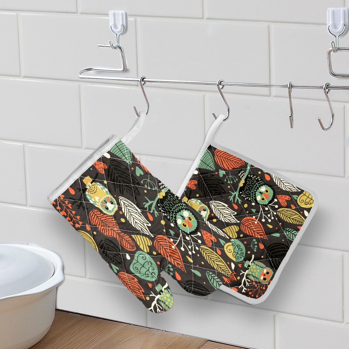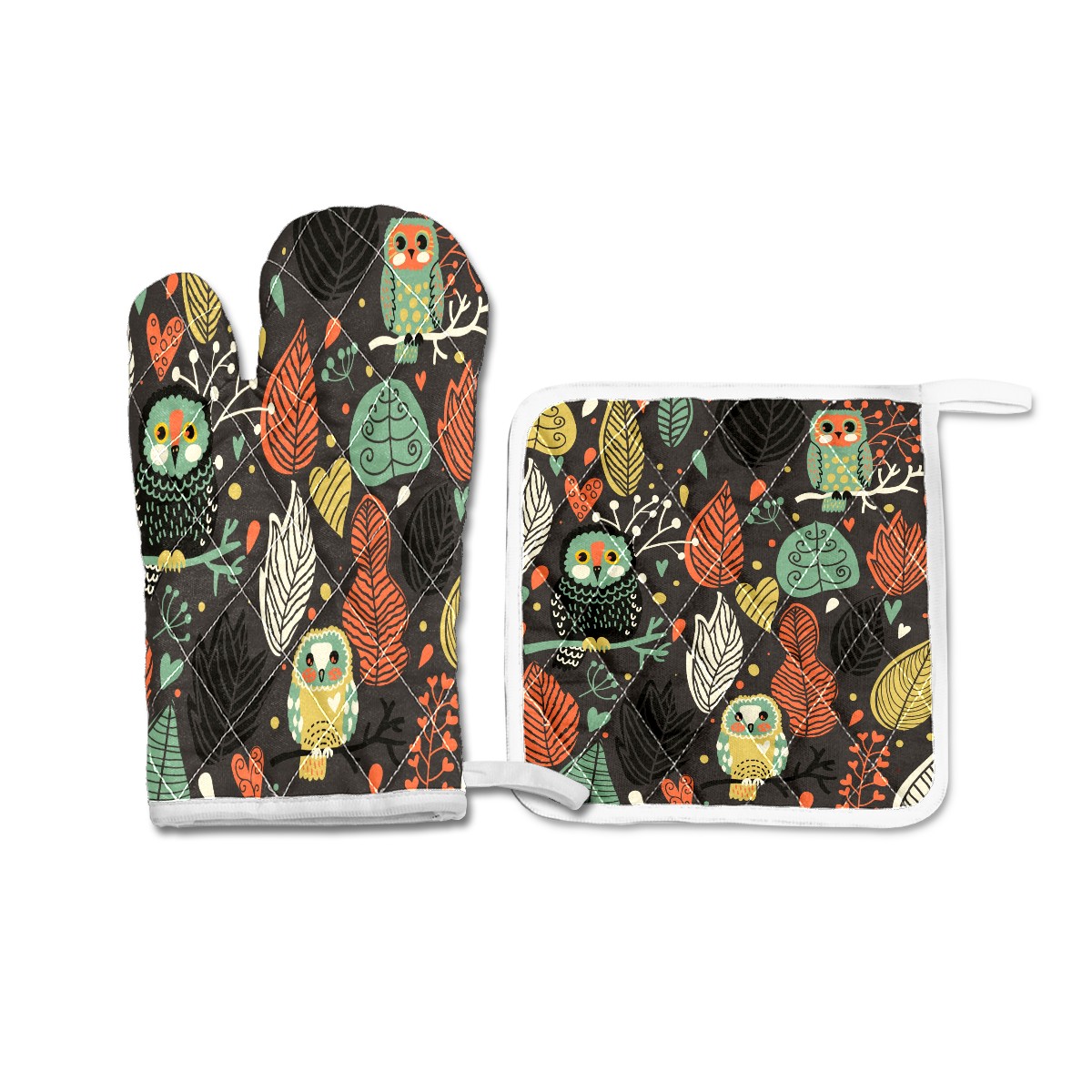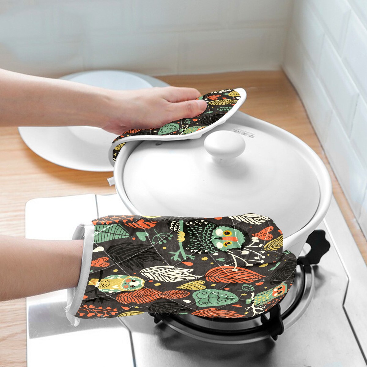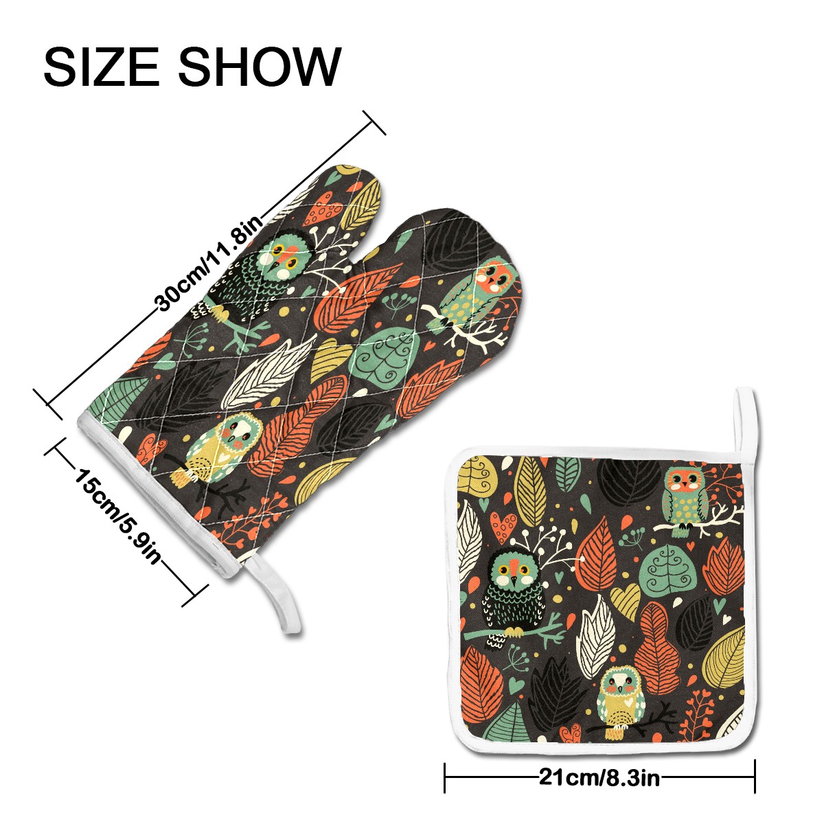 <p>Oven Mitts (size:5.9 x 11.8in) and Pot Holders (size: 8.3 x 8.3in).</p><p>Multi-function pot holders, convenient storage, soft and durable, washed and reused.</p>