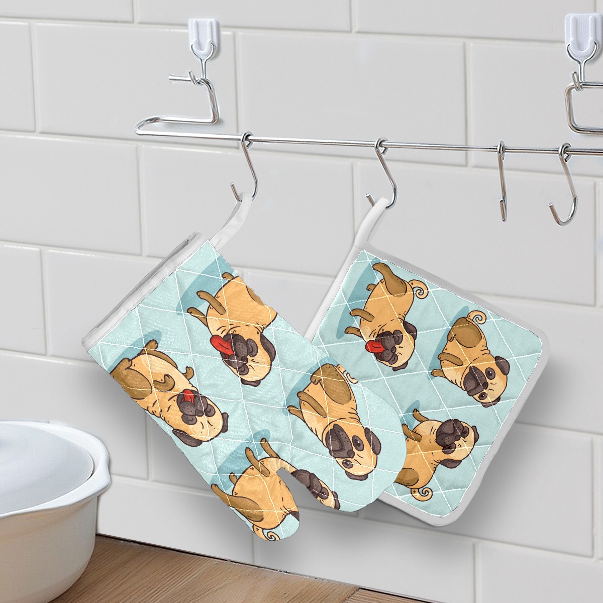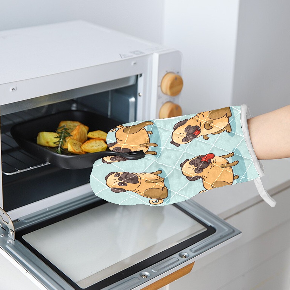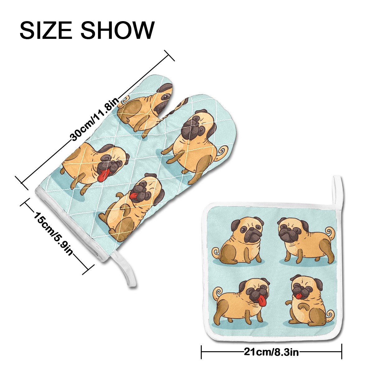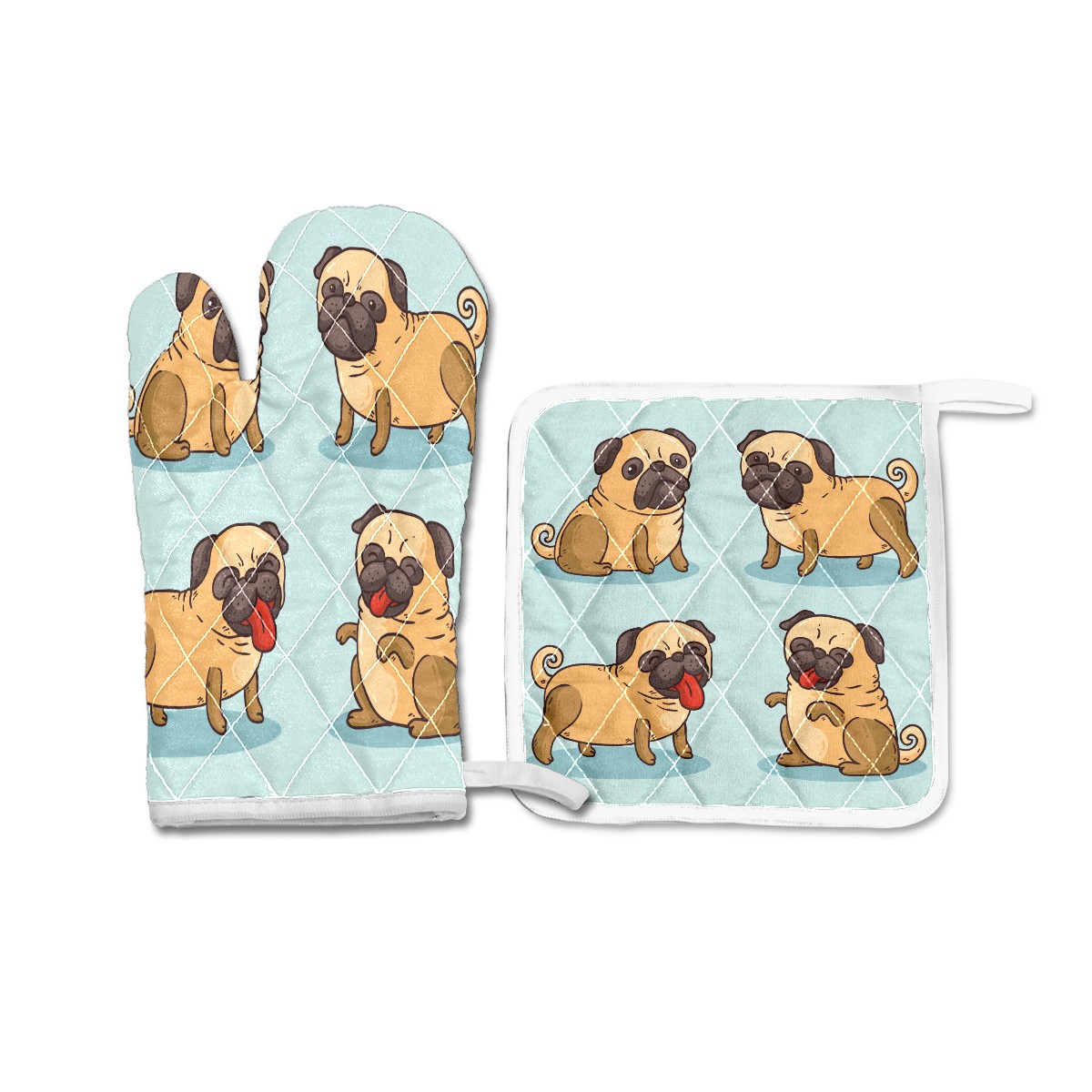 Oven Mitts and Pot Holders Sets Funny Pugs Kitchen Gloves Hot Pads for Baking Cooking Grilling BBQ