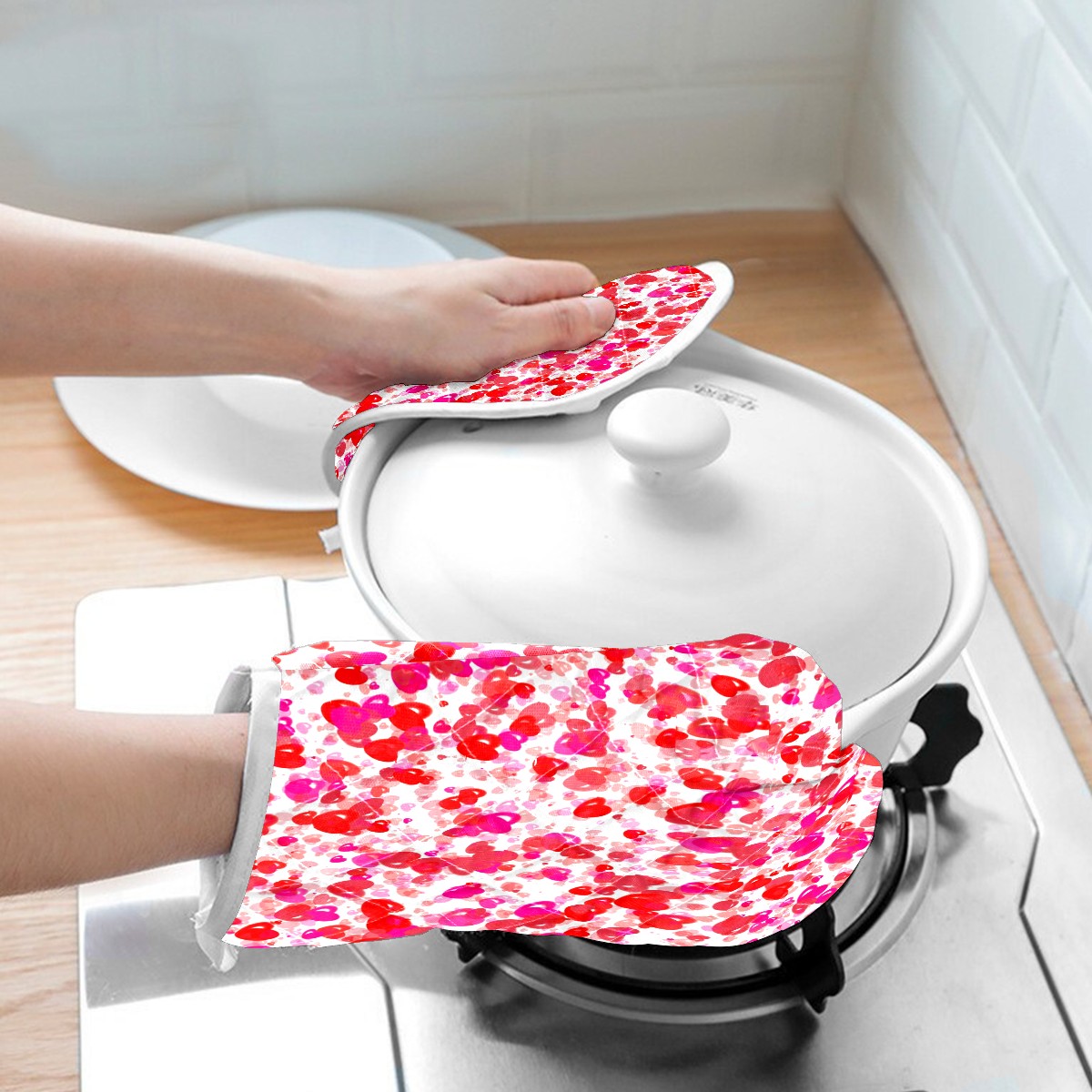 <p><b>Funny Oven Mitts and Pot Holders Sets 480 F Non-Slip Oven Gloves for Kitchen Cooking Baking Grilling Microwave </b></p><p><b>Size:</b>1 oven mitt (11.8 in x5.9 in) and 1 pot holders (8.3 in x 8.3 in)</p><p><b>Material: </b>polyster + cottoon</p><p><b>Features:</b></p><p>-Customized cute thicker oven mitts, temperature up to 480℉/250℃, which will effectively protect your hands from burns. It’s perfect for a Thanksgiving Day/Christmas gift and is the best choice for baking lovers.</p><p>-Each oven mitt is equipped with a hanging loop for easy storage. Non slip neoprene grip allows you to grab hot pots, pans, and cookie sheets with</p><p>confidence</p><p>-Oven Mitts and pot holders are machine washable & dryer safe. Cotton lining reinforced so padding won't come out after washing. Silicone oven gloves can be cleaned in dishwasher or rinsed with water</p><p>-If you aren't satisfied for any reason with your pot holder, please reach out to us directly so we can take care of you.</p><p><b>Package Including:</b></p><p>1 Gloves</p><p>1 Pot Holders</p>