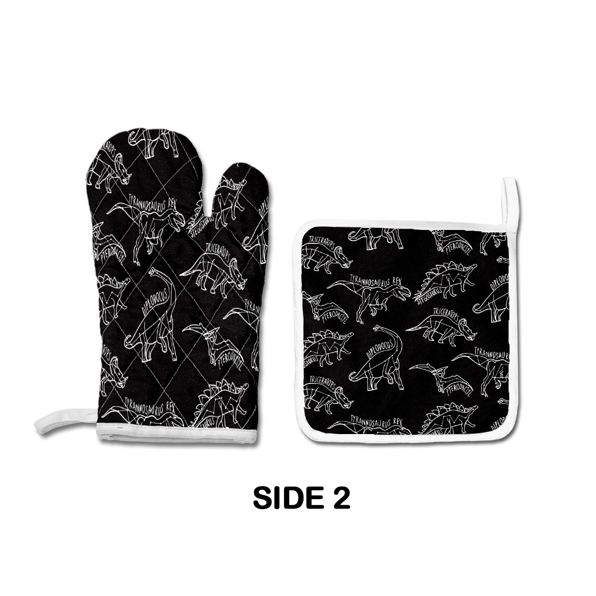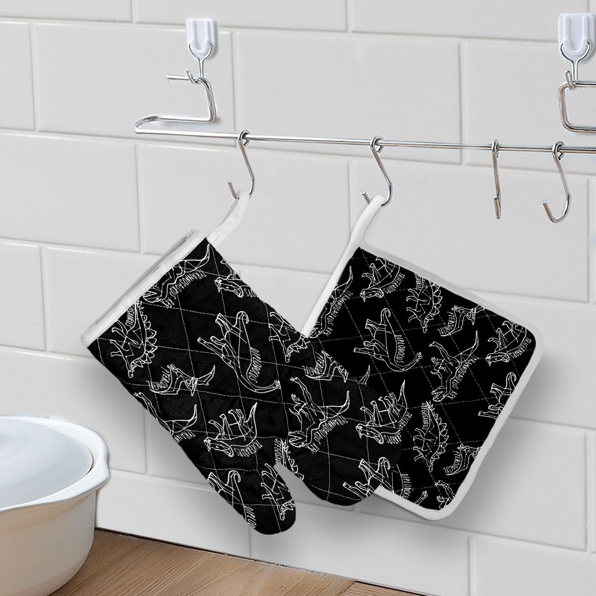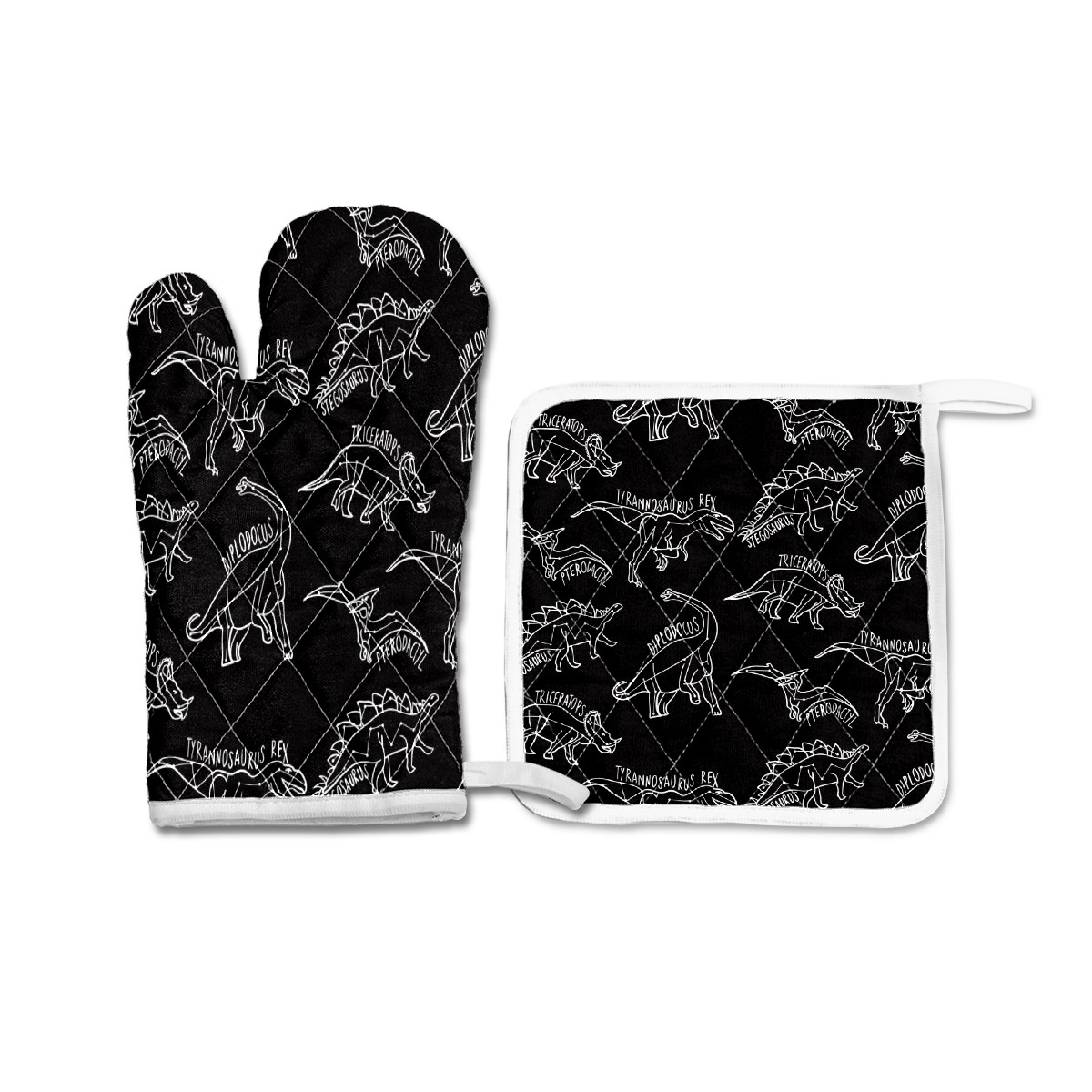 Oven Glove and Pot Holders Hand Drawn White Outline Dinosaurs Pattern Kitchen Gloves Non Slip BBQ Gloves Oven Mitts Pot Holders Sets for Kitchen Cooking Baking Grilling