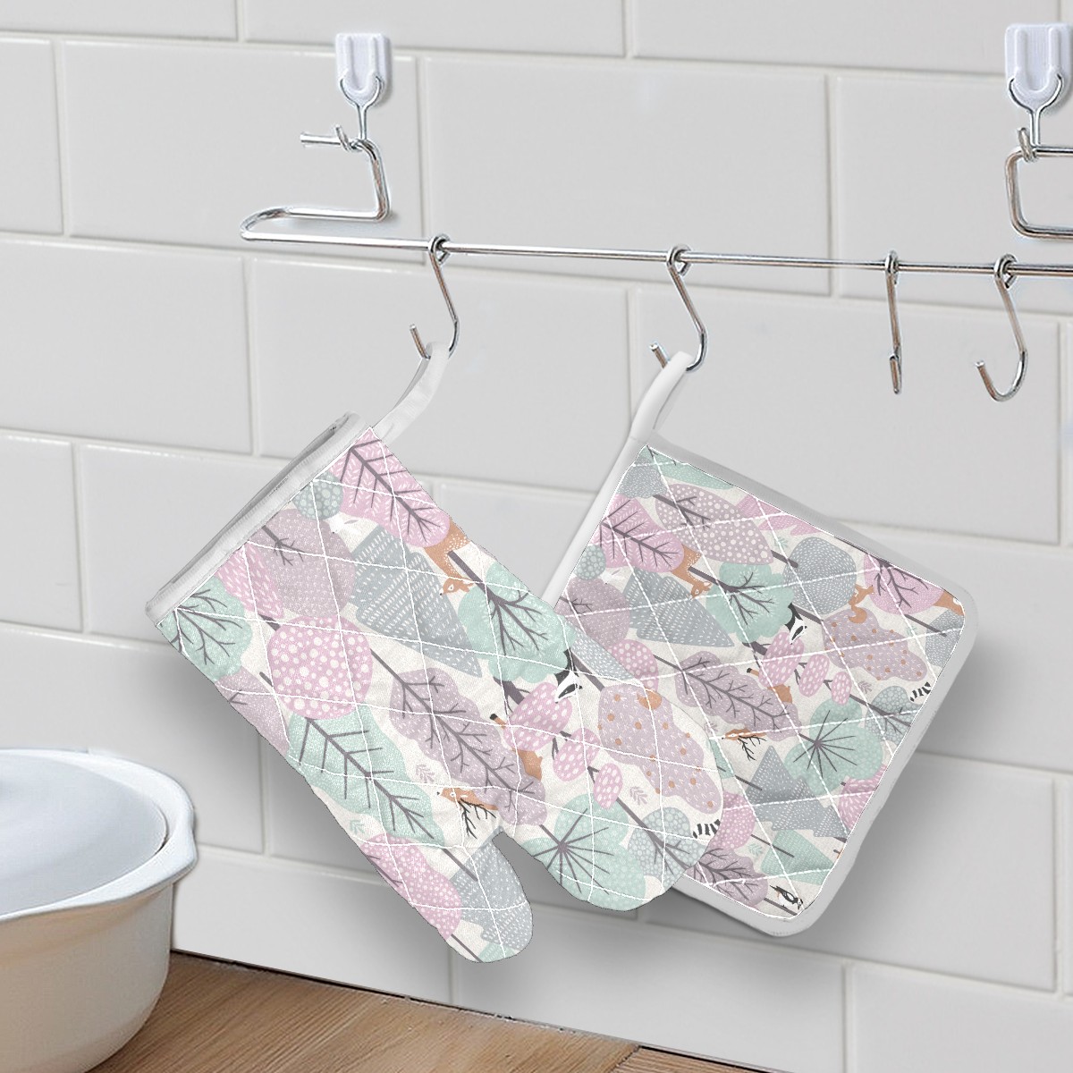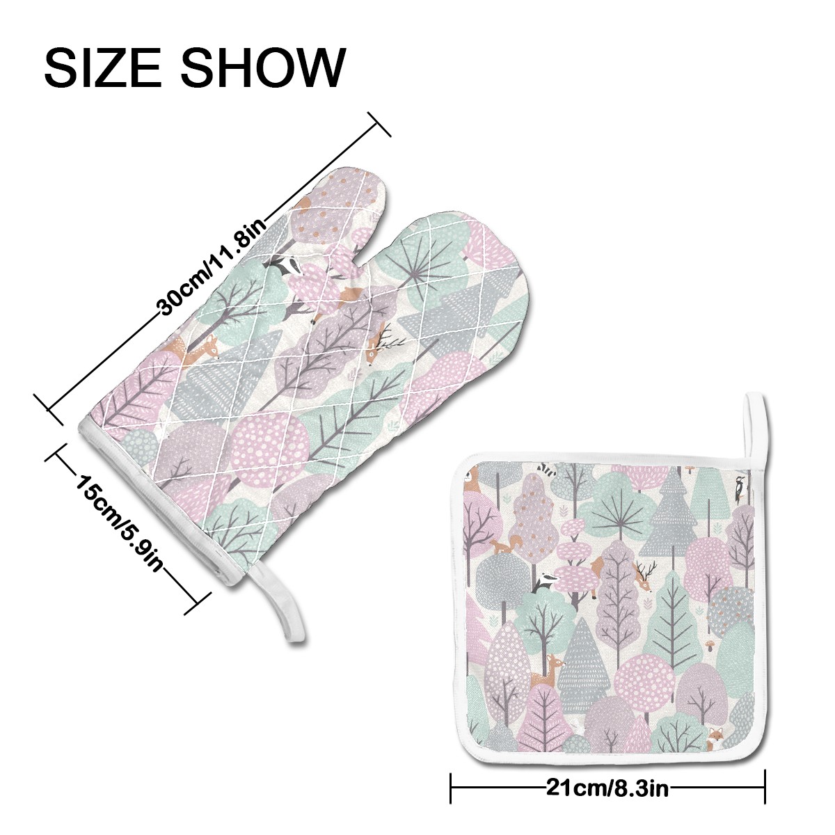 <p><b>Oven Mitts and Pot Holders 2 Pieces Set FOR KITCHEN USED</b></p><p>1x Heat insulation gloves</p><p>1x Heat insulation mat</p><p>Improving The Quality Of Life _ Decorations Are Attributed To Nature and Beauty</p><p><br /></p><p><b>Features and Functions:</b></p><ul><li>High-quality heat insulation glovers prevent your hands from being burned.</li><li>Convenient hanging storage won't occupy kitchen space.</li><li>Suitable for uncovering the pot cover in the kitchen, microwave oven gloves, oven end dishes and BBQ.</li><li>Potholders can be used as pads for hot pots, hot dishes, bowls and trays.</li><li>Beautiful kitchen decoration with stylish pattern.</li><li>Kitchen Aid Oven Mitts</li></ul><p><b>Description:</b></p><ul><li>Material: Polyester & Cotton</li><li>Size of Oven Mitt & Pot Holder Set: Oven Mitt 11.8x5.9inches, Potholder 8.3x8.3inches.</li><li>Package Included 1* oven mitt & 1* potholder.</li><li>Care Instruction: Do not use with temperatures higher than 250 degrees C/475 degrees F</li></ul><p><b>Note:</b></p><p>Due to the light and display of each computer or phone, the pictures and objects will be slightly different.</p><p>✿Search for more pattern designs from our store! </p><p>✿Thank you for purchasing our product, if you need our support please contact us.</p>